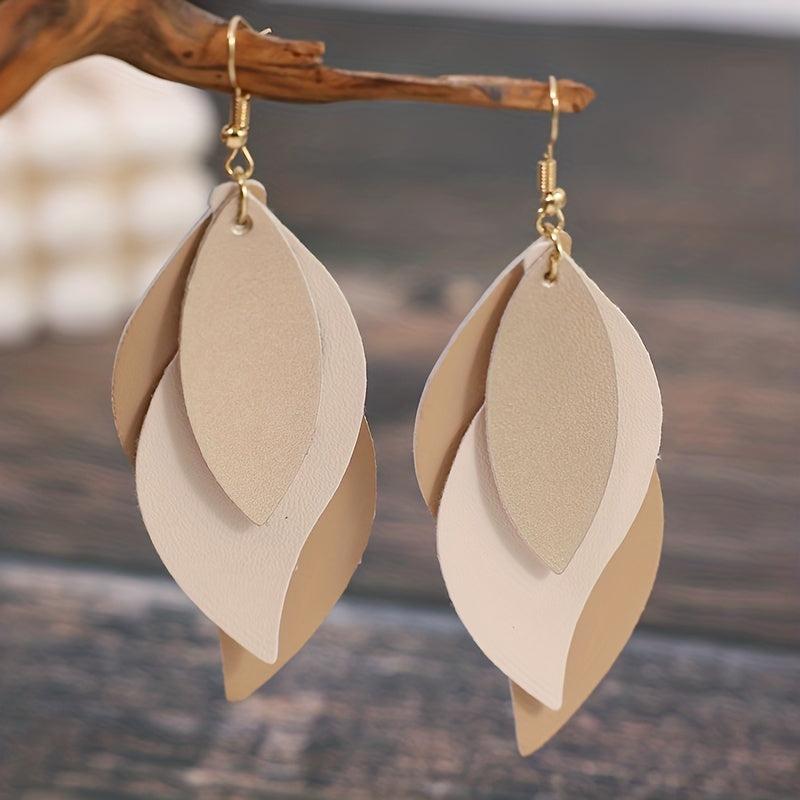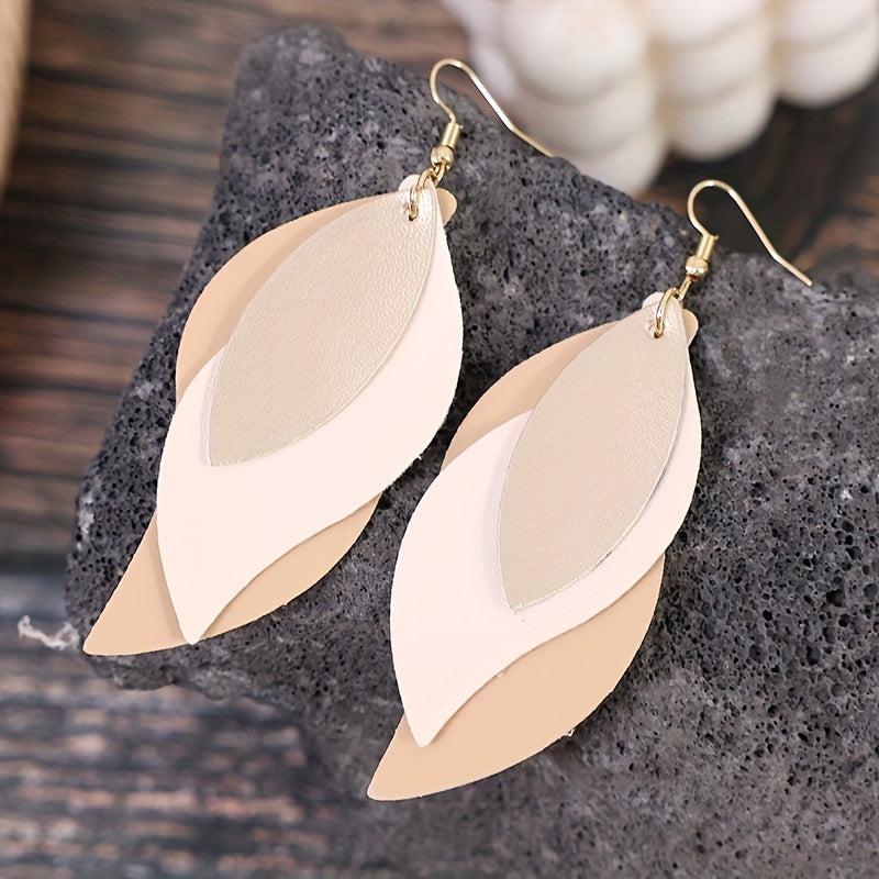 These stylish dangle earrings feature a three-layer leaf design with a retro look. Made of high-quality PU leather, they make a great gift for women for daily casual wear.