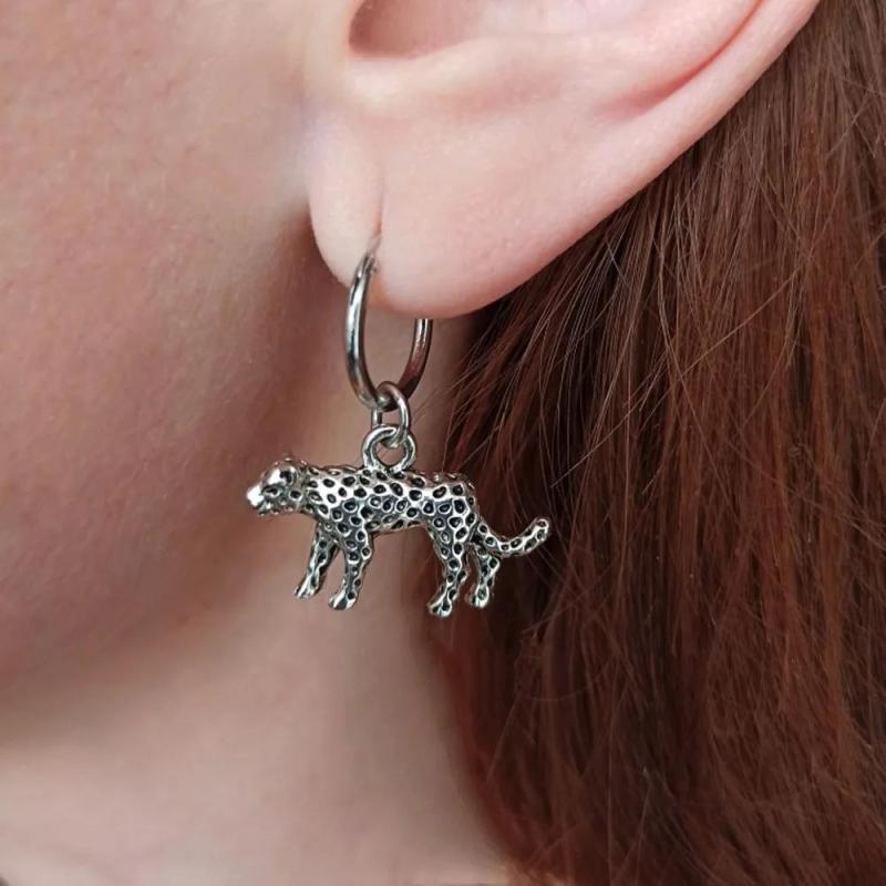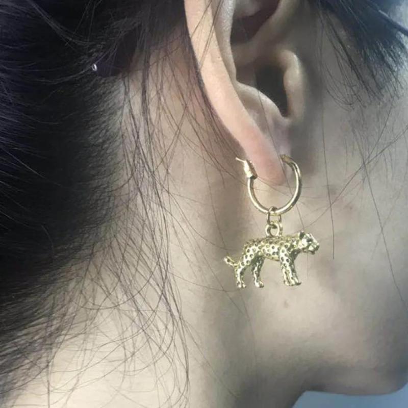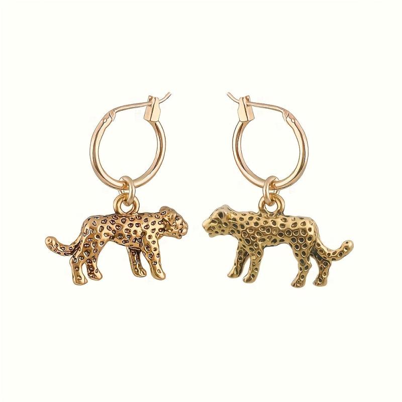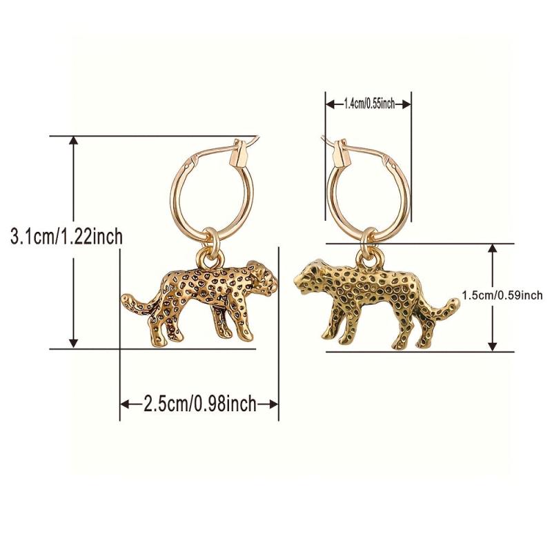 These golden tone leopard hoop earrings with pendant are perfect for daily wear or gifting. The vintage inspired design adds a touch of elegance to any outfit. Made of zinc alloy with stainless steel posts, these earrings are lightweight and comfortable to wear.