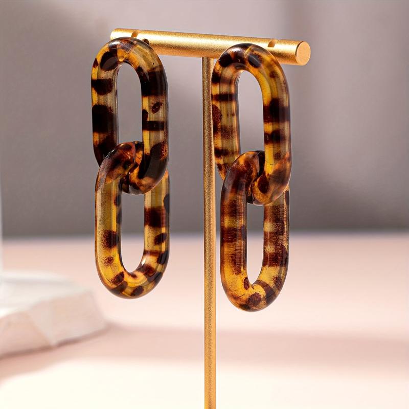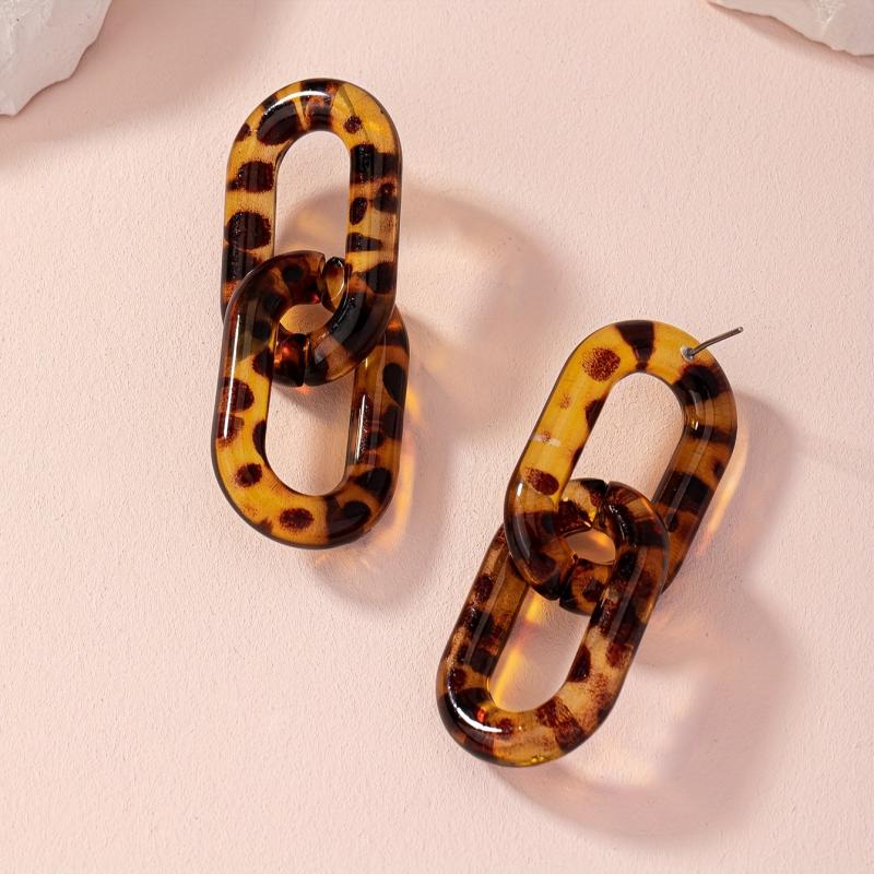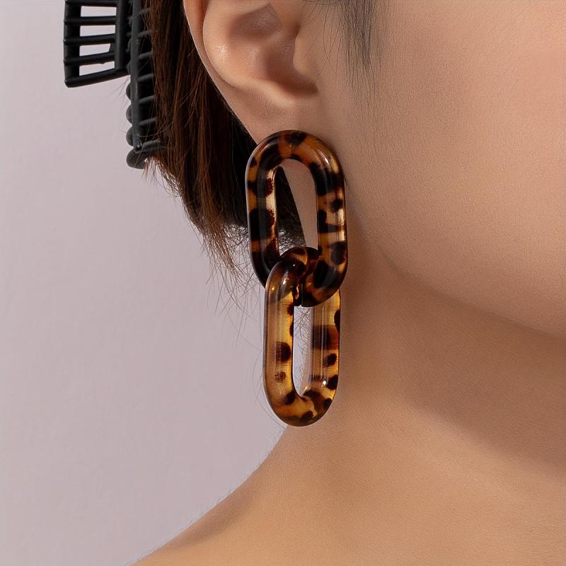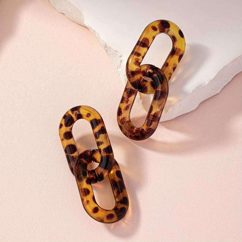 Make a bold statement with these leopard print acrylic earrings. Perfect for parties or casual outings. High-quality acrylic material with a retro flair.