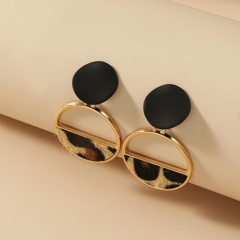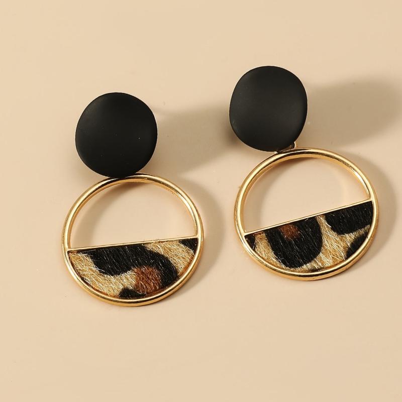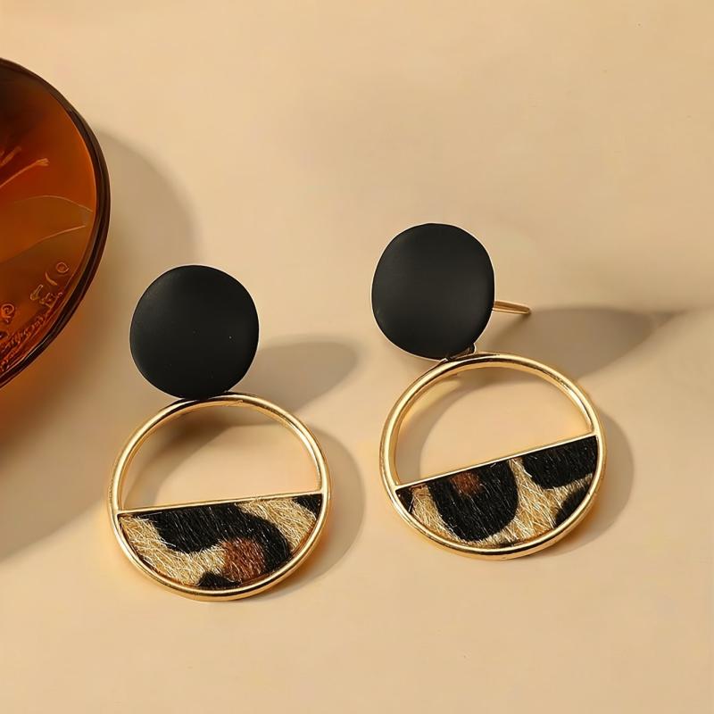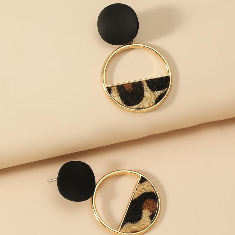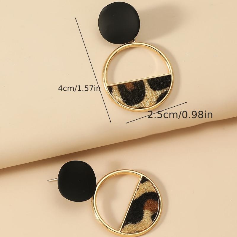 Stylish vintage leopard print round drop earrings made from alloy with stainless steel ear needle. Suitable for daily wear or party occasions.