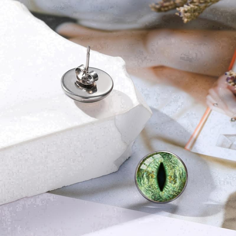 Add a touch of unique minimalist style with these stainless steel stud earrings featuring lizard eyes. Suitable for both men and women, these earrings make quirky holiday accessories.