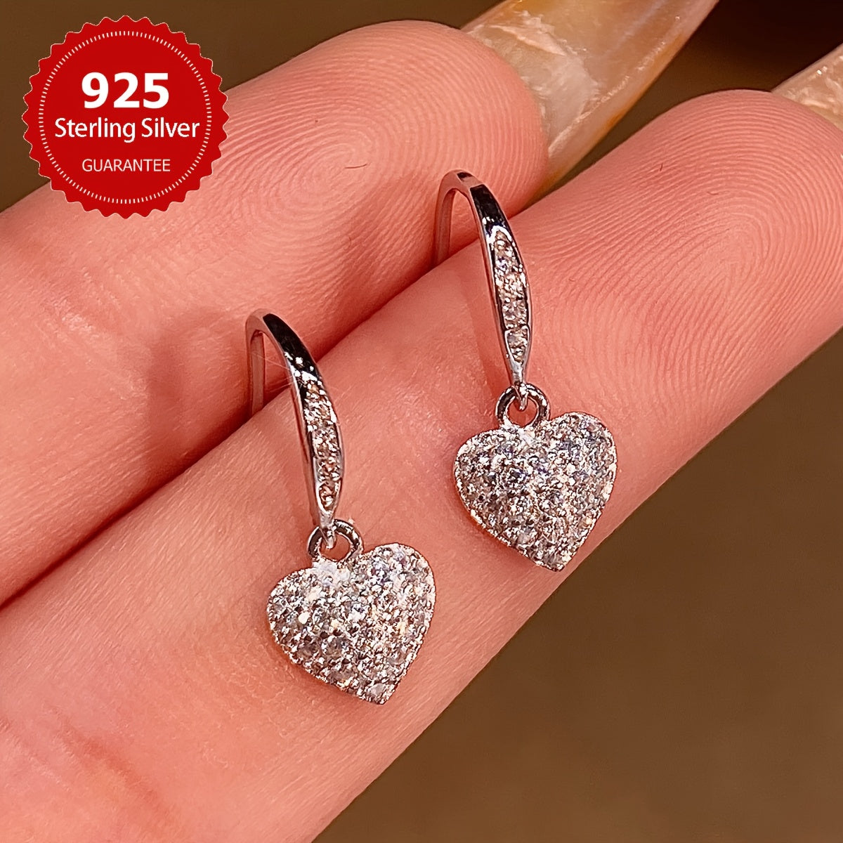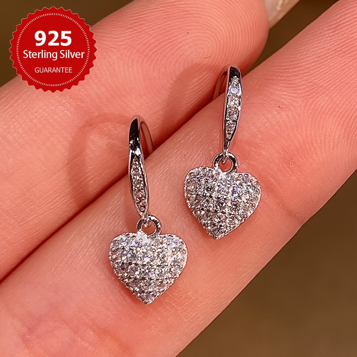 These elegant Love Pendant Earrings are crafted from pure s925 silvery and inlaid with zirconia. They weigh about 1.3 grams, making them lightweight and comfortable to wear. Perfect as a gift for women who love stylish jewelry.