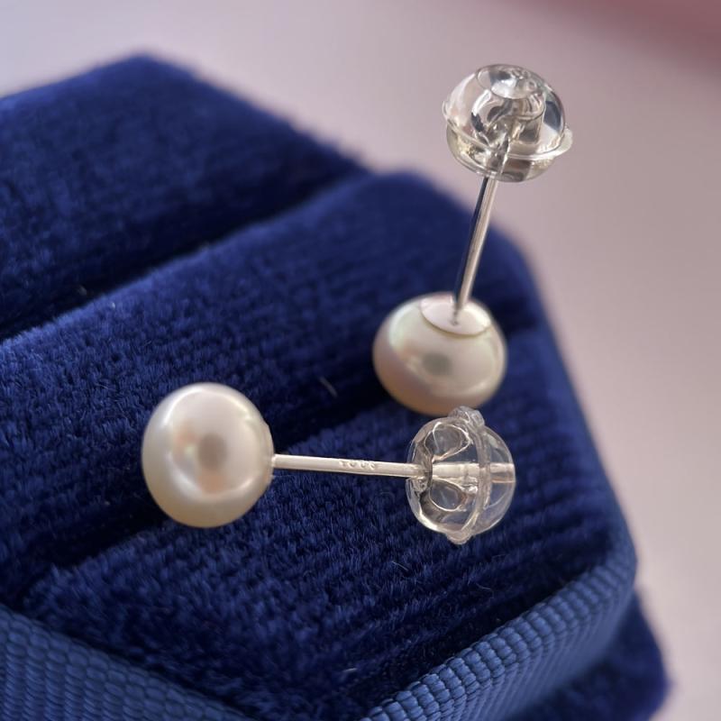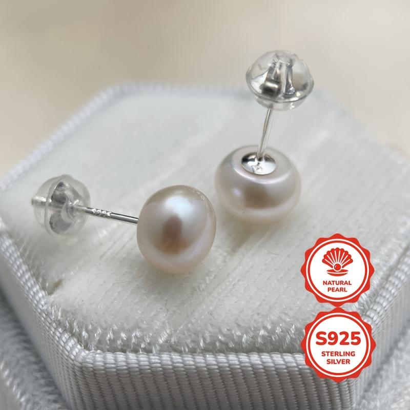 Elegant stud earrings featuring luminance natural freshwater pearls. Perfect for birthdays, Mother's Day, weddings, and corporate gifts.