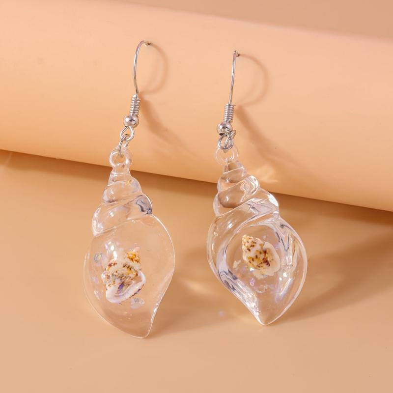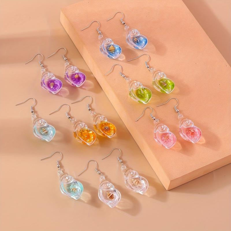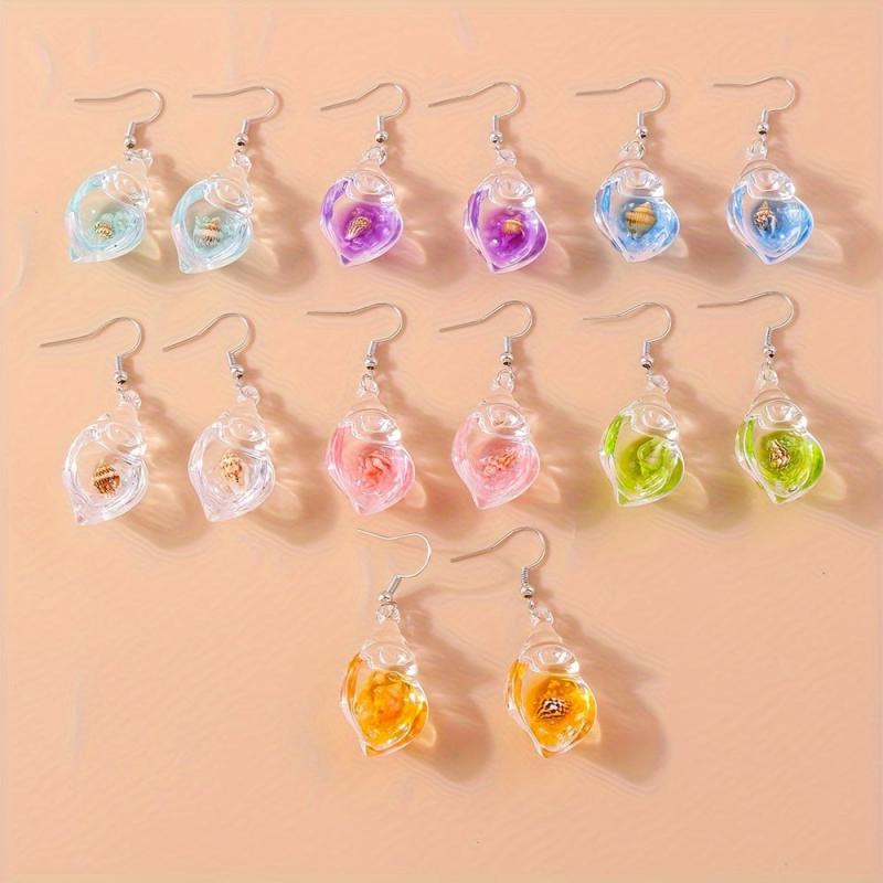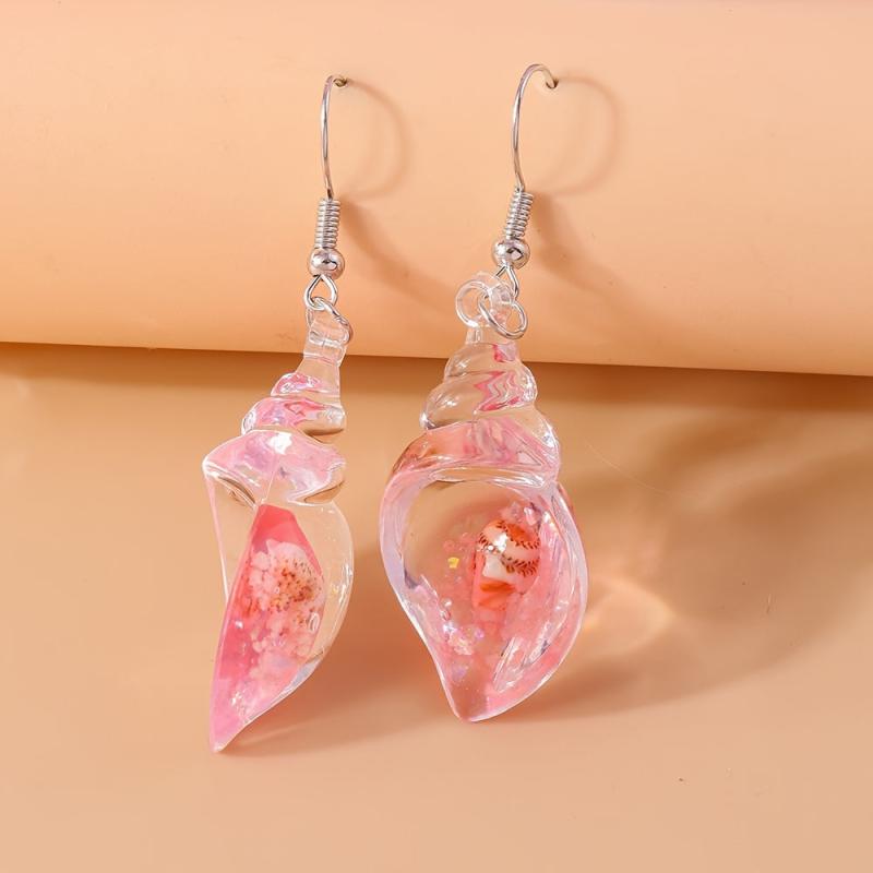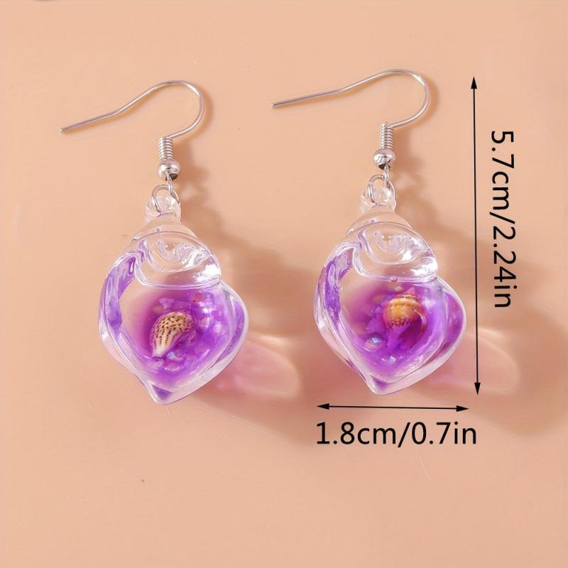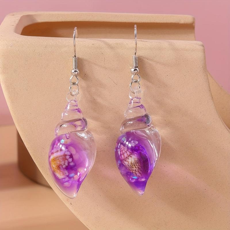 Add a touch of summer beach vibes to your outfit with these unique dangle earrings featuring luminous resinous conch design. Perfect for music lovers!