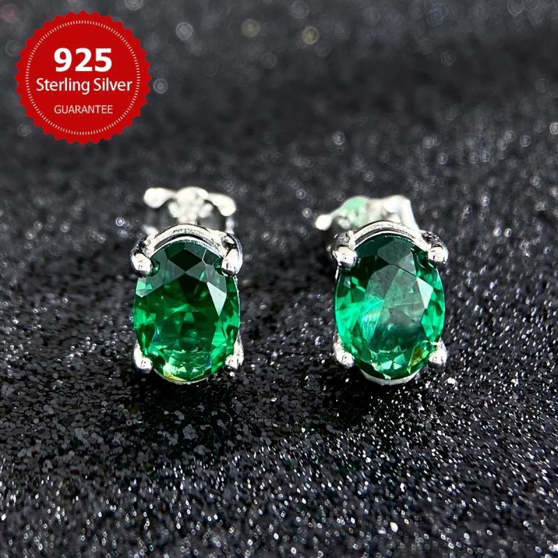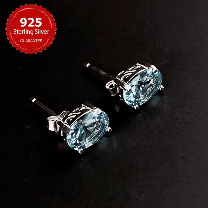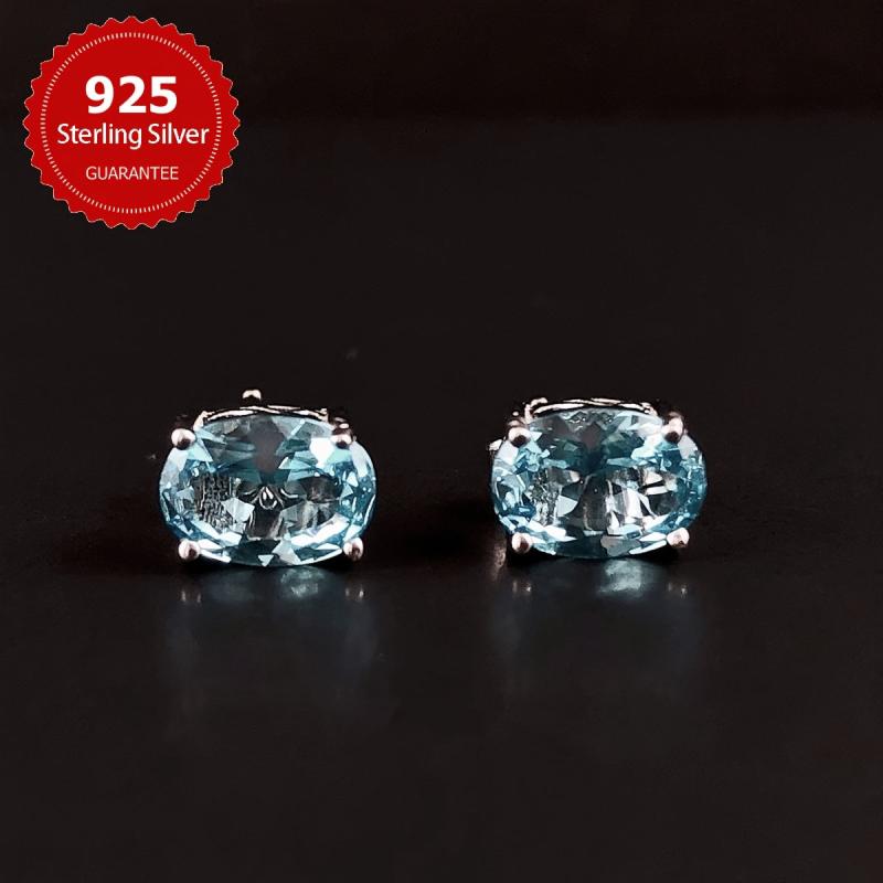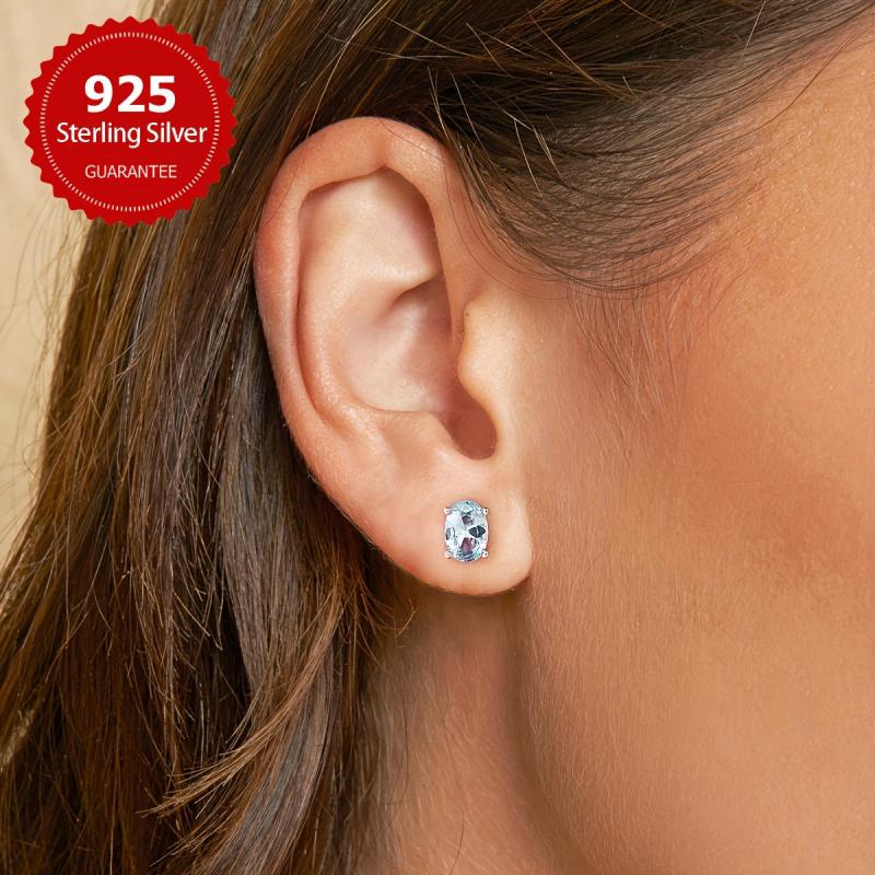 These elegant stud earrings feature oval March birthstones in s925 sterling silver. Perfect for everyday wear or special occasions.