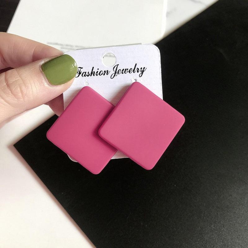 Add a pop of color to your outfit with these striking pink square stud earrings. Made from geometric acrylic, these bold candy pink earrings offer a minimalist design that will elevate any look.