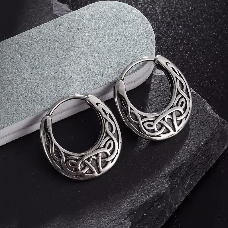 Embrace a stylish ethnic punk rock look with these male earrings featuring a Celtic knot design. Crafted for comfort with hypoallergenic materials.