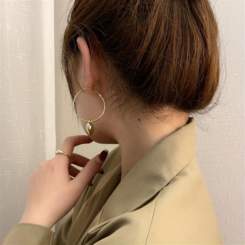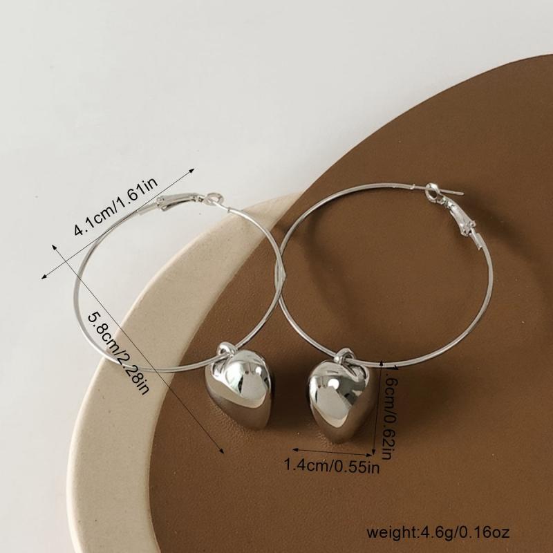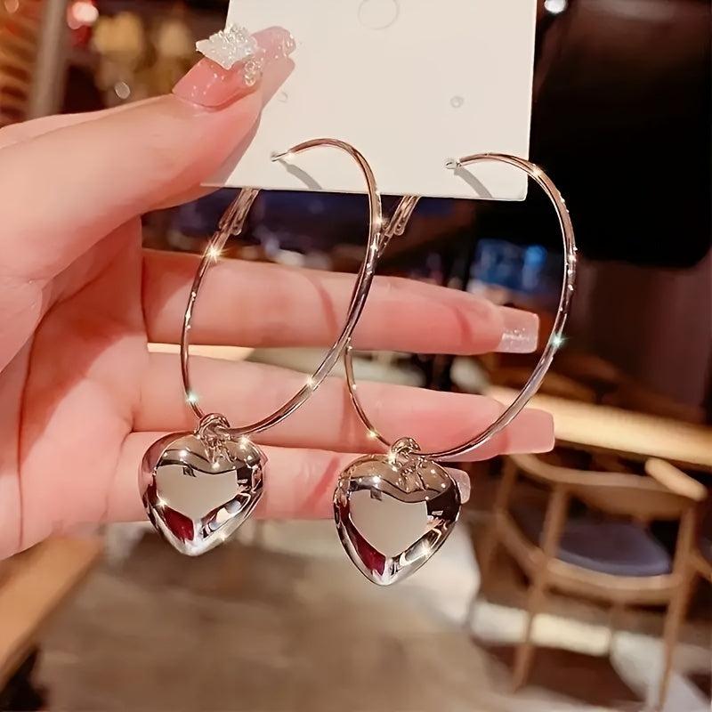 These delicate hoop earrings feature a metal heart pendant, adding a touch of elegance to your outfit. Perfect for a romantic date night or special occasion.
