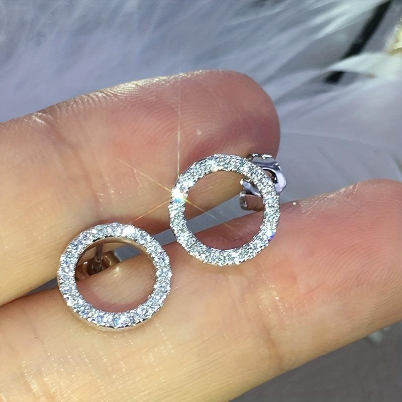Elegant round stud earrings featuring micro paved zirconia, perfect for engagement party or as a gift.