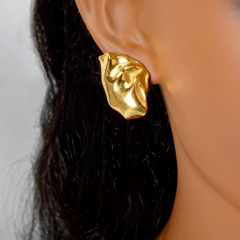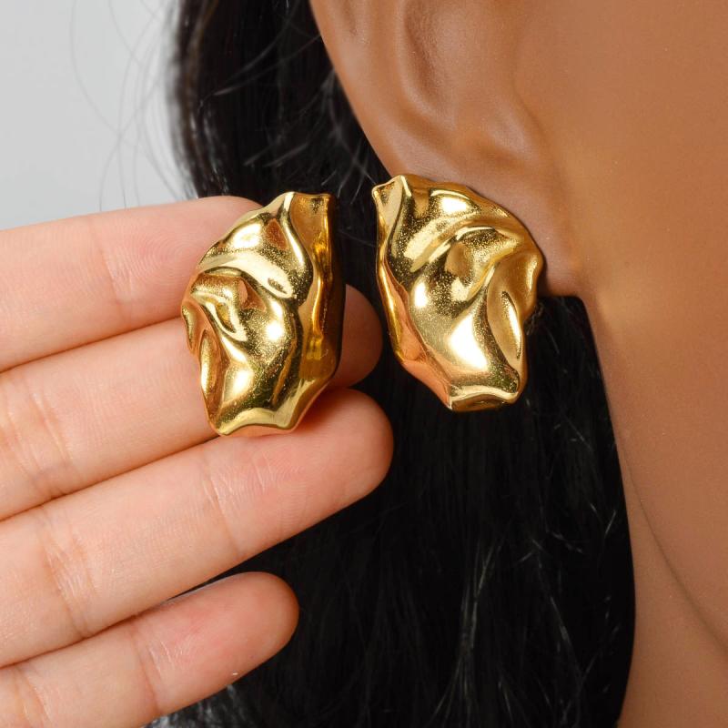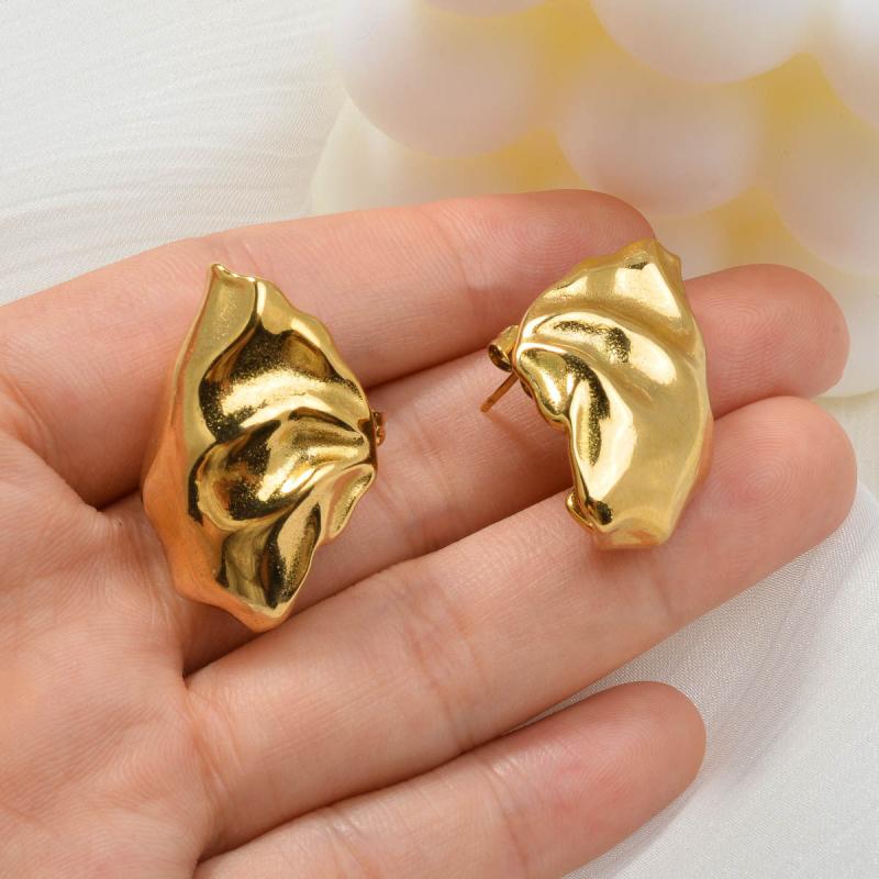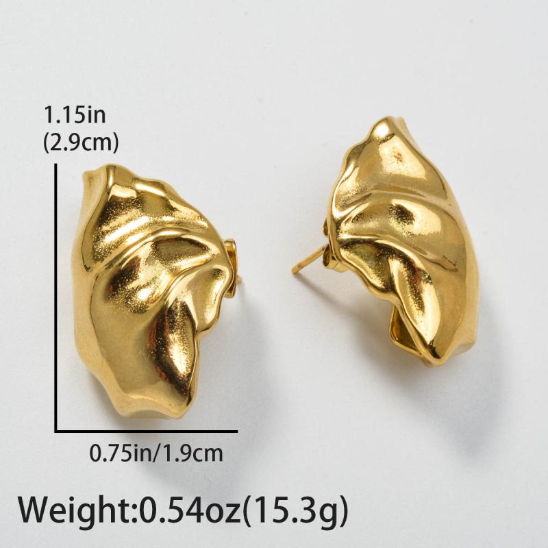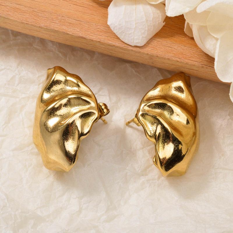 Enhance your daily style with these elegant Middle Eastern inspired drop earrings featuring pleated design and golden tone metal studs.