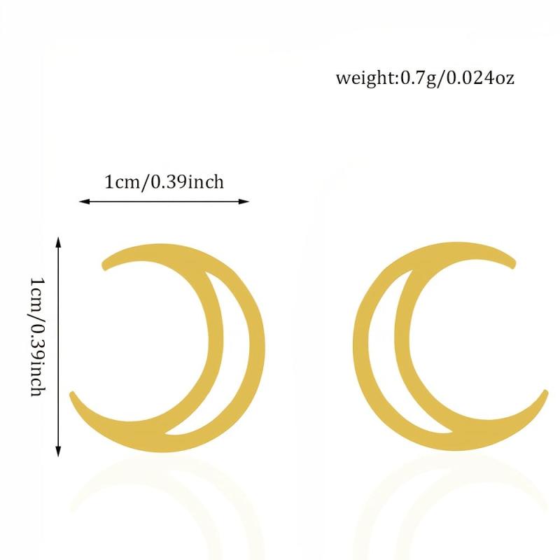 Add a touch of celestial charm to your look with these mini moon stud earrings. Made of stainless steel with 18K gold plating, these earrings are perfect for cartilage or tragus piercings.