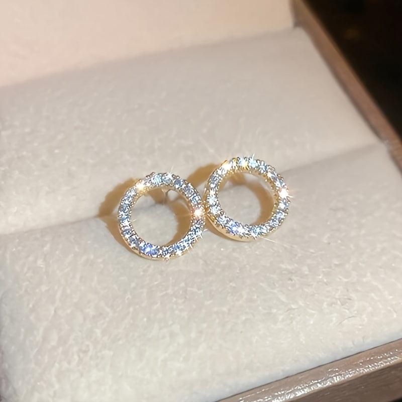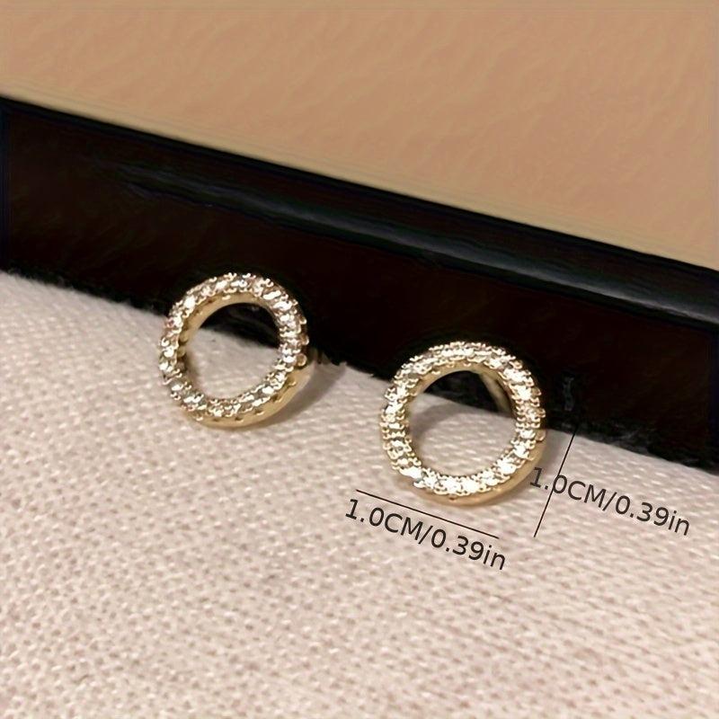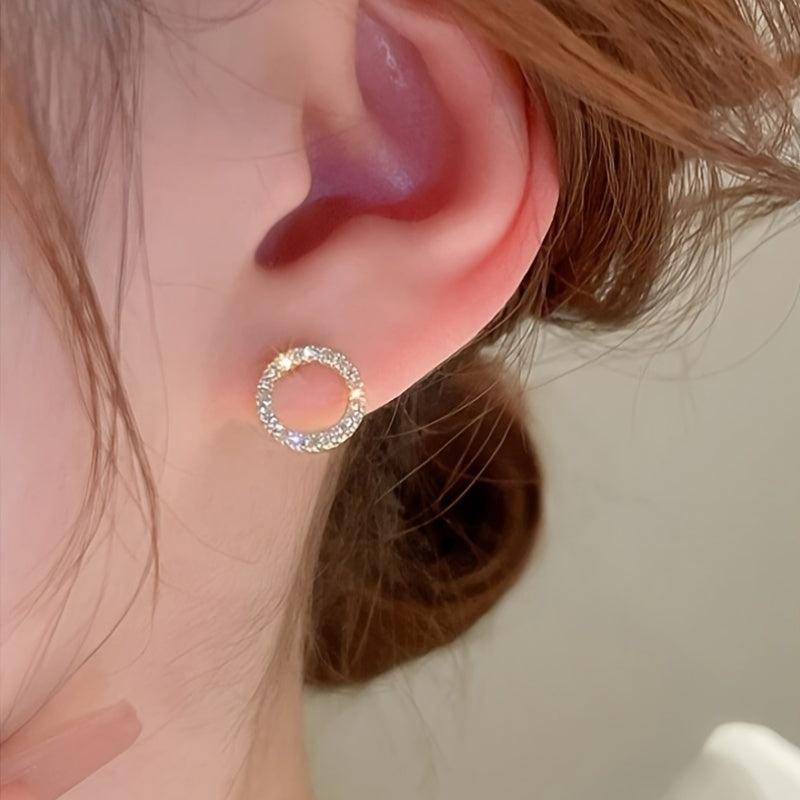 Add a touch of fairy-like charm to your outfit with these elegant circle earrings featuring sparkling rhinestones and pearl studs. Perfect for daily wear or special occasions.