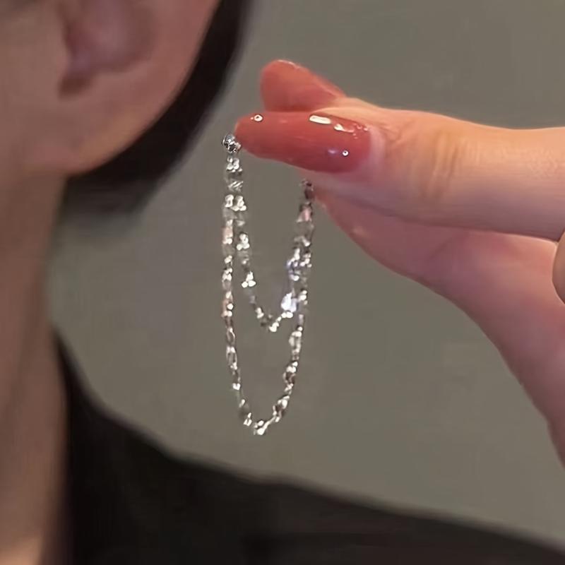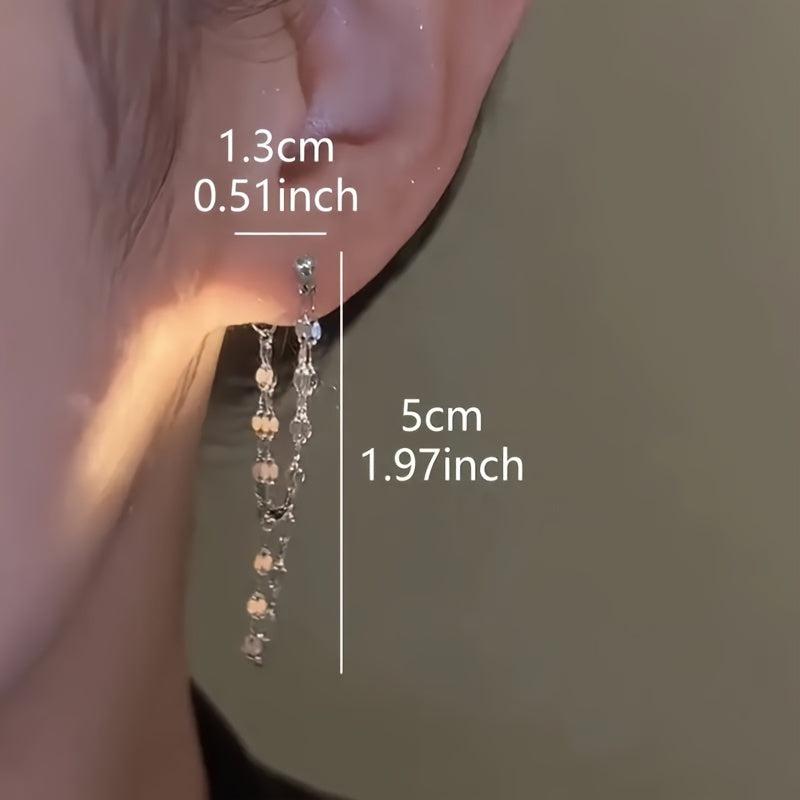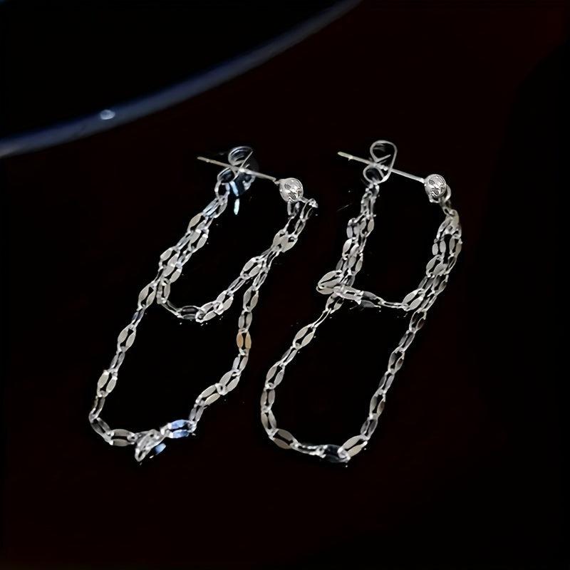 Elevate your style with these sleek double layer lip chain tassel earrings made of high-quality stainless steel.