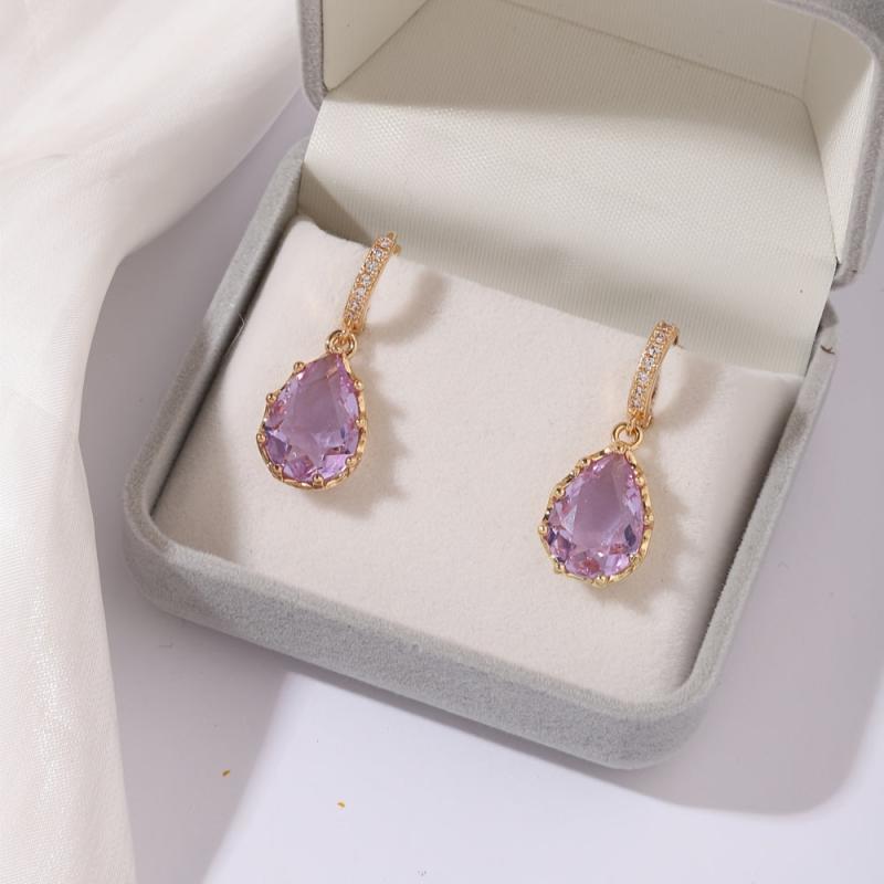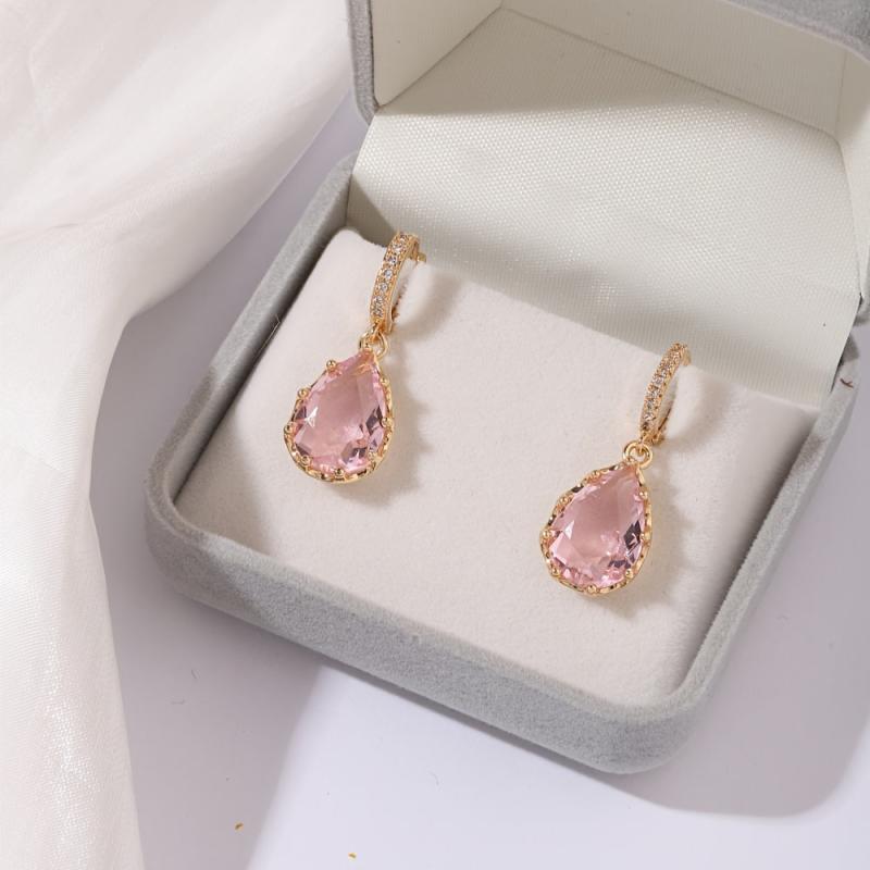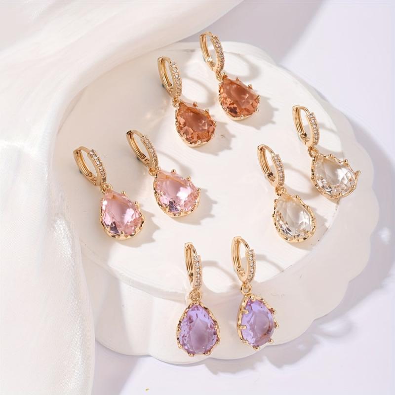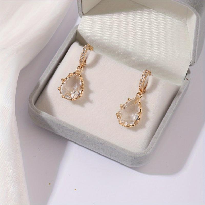 Elegant pair of earrings featuring non-feather ear needles with synthetic zirconia. Perfect for daily wear or as a gift for any occasion.