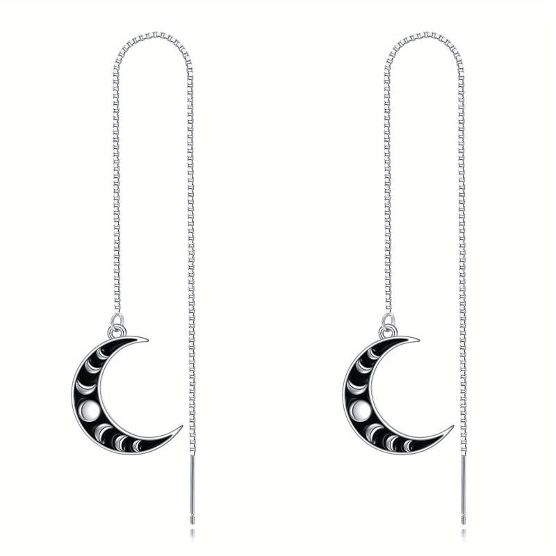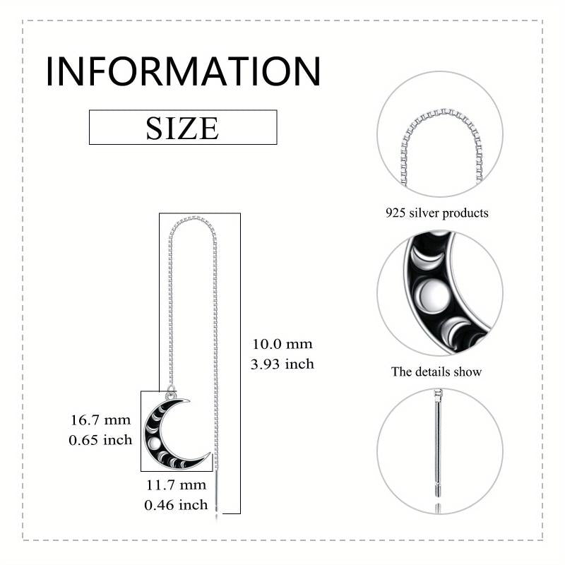 These beautiful moon phase threader earrings are made of 925 sterling silver. They feature a long chain design that dangles elegantly, making them a perfect gift for women.