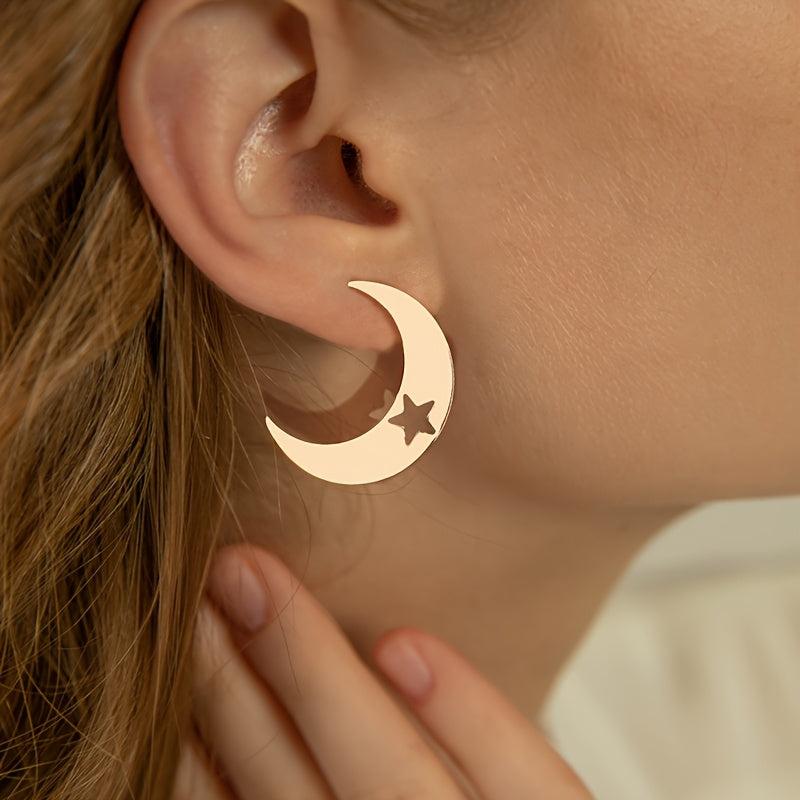 Elegant earrings set featuring moon and star design, perfect for any style.