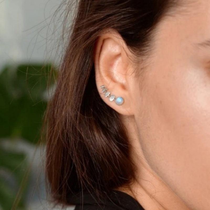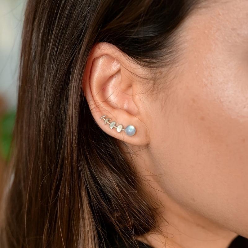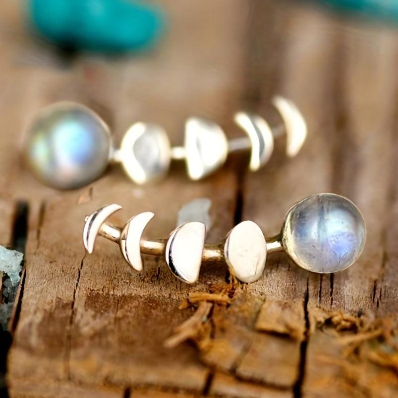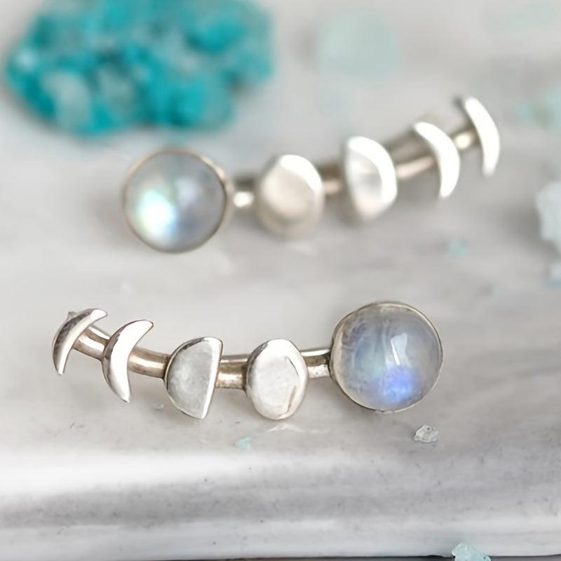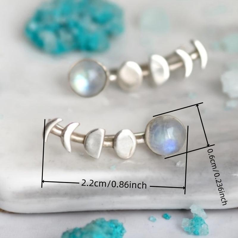 These women's dangling earrings are perfect for daily wear or holiday parties. They feature synthetic moonstone inlays and a unique fishbone design.