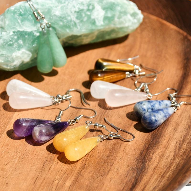 Handcrafted bohemian style drop earrings with genuine crystal gemstones. Ideal for daily wear with no plating. Perfect for February birthstone gift.