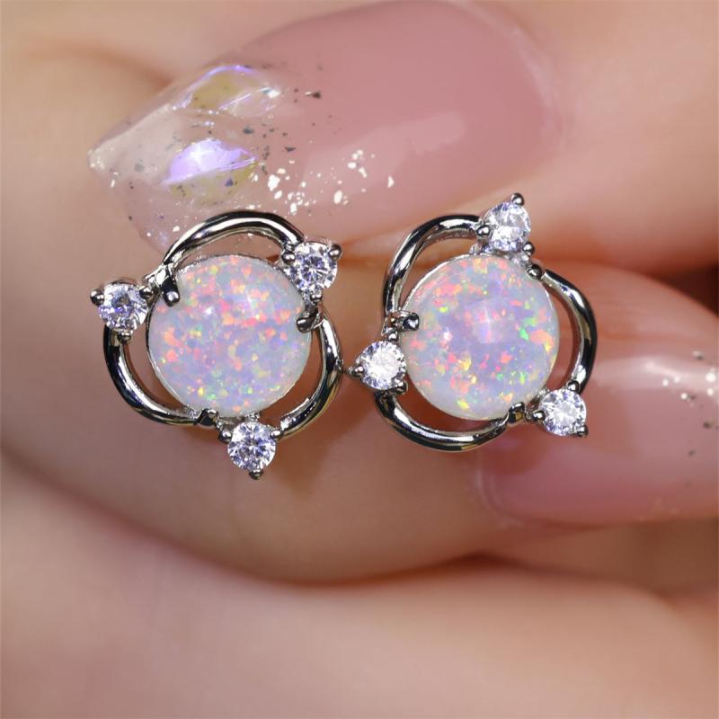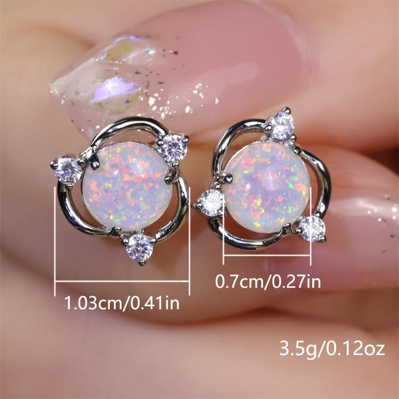 Opal Embellished Stud Earrings with Tiny Flower Vintage Style