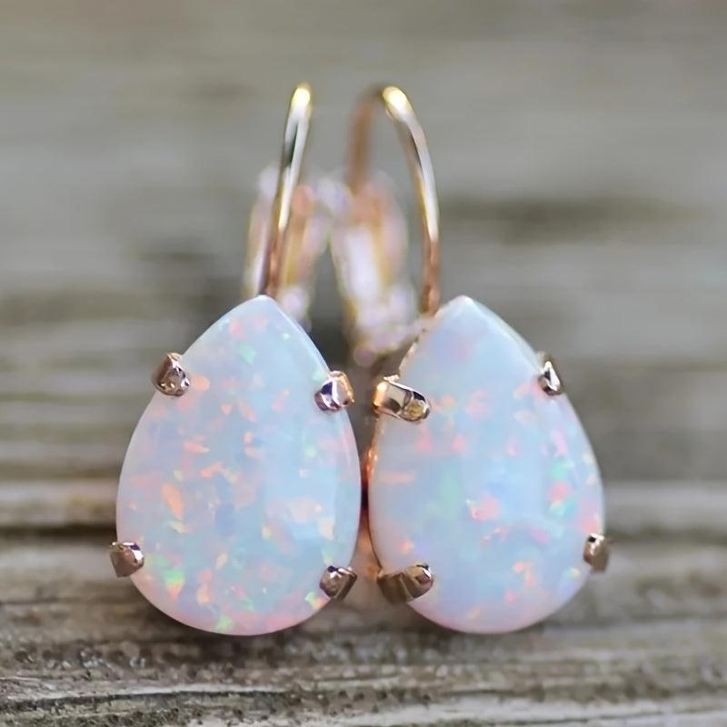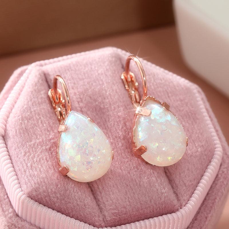 Opal Vintage Style Rose Gold Water Droplet Earrings