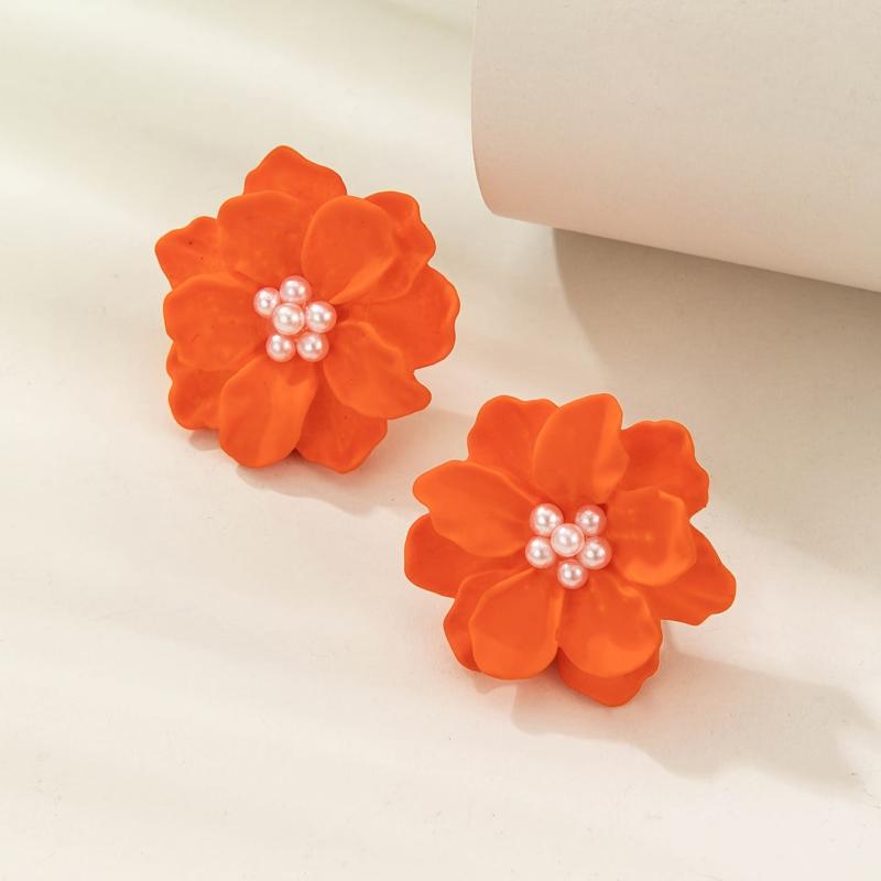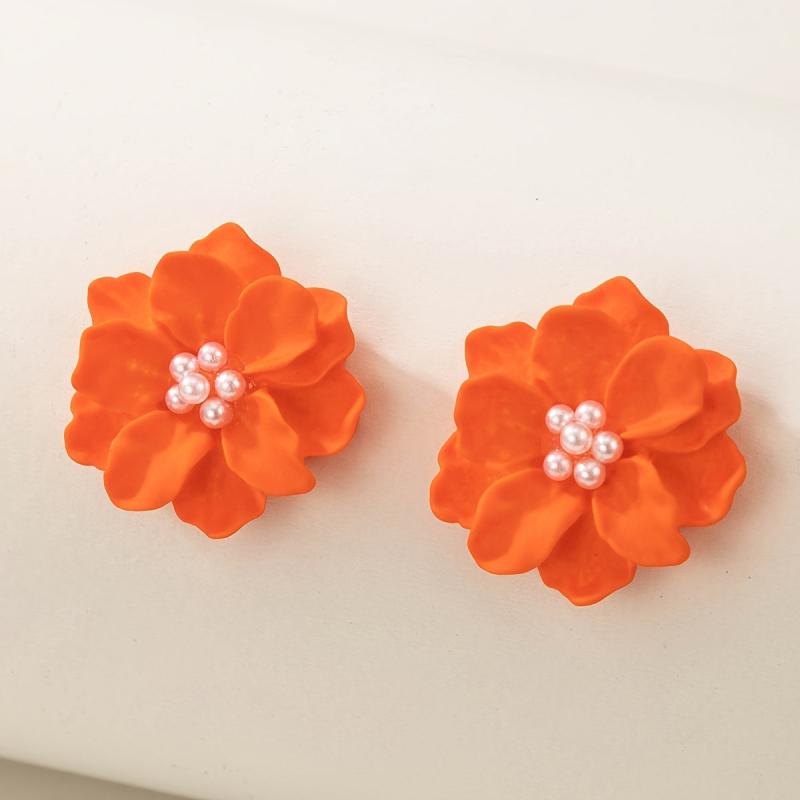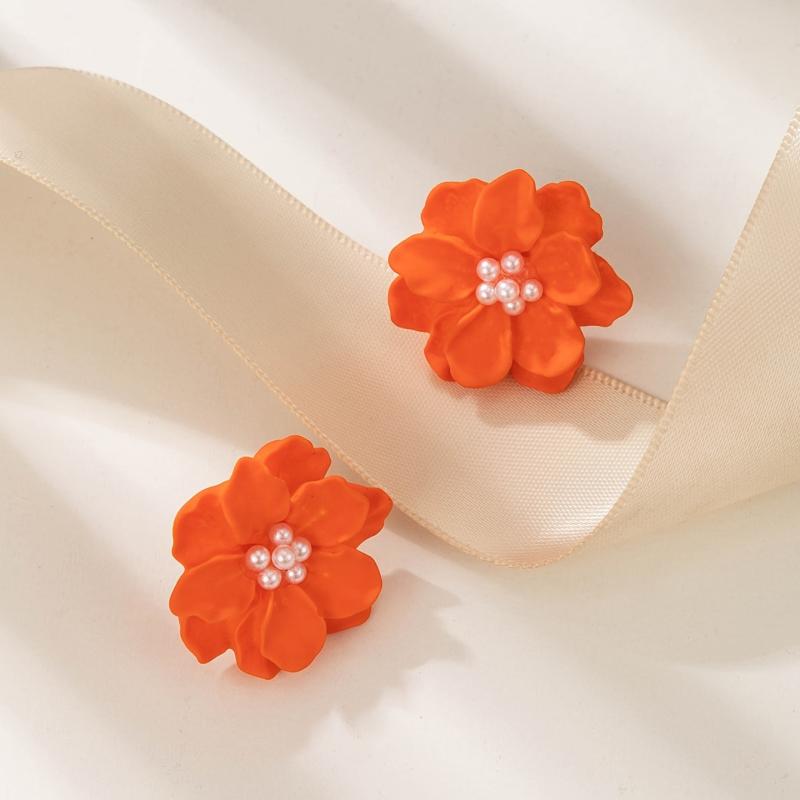 Add a pop of color and style to your outfit with these versatile orange camellia flower stud earrings. Perfect for women and girls.