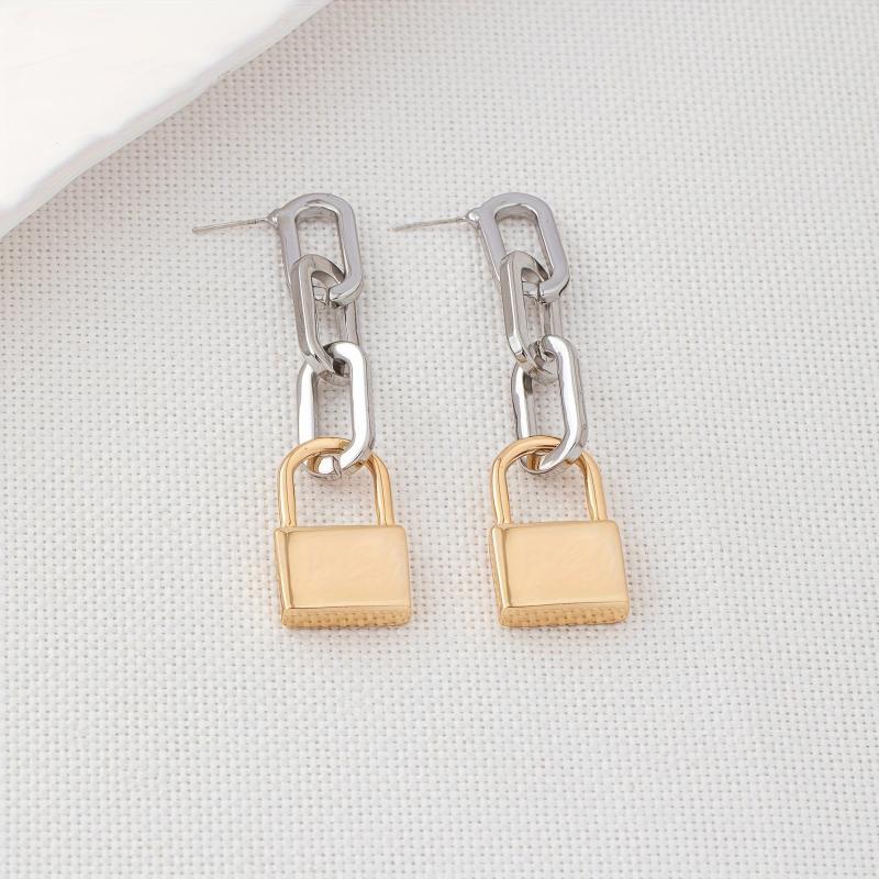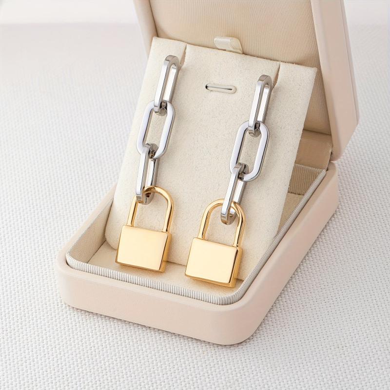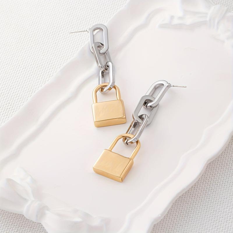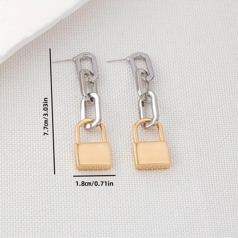 Add a touch of bohemian and classic style to your look with these versatile oval golden tone metal padlock earrings. Perfect for everyday wear or for your vacation outfits.
