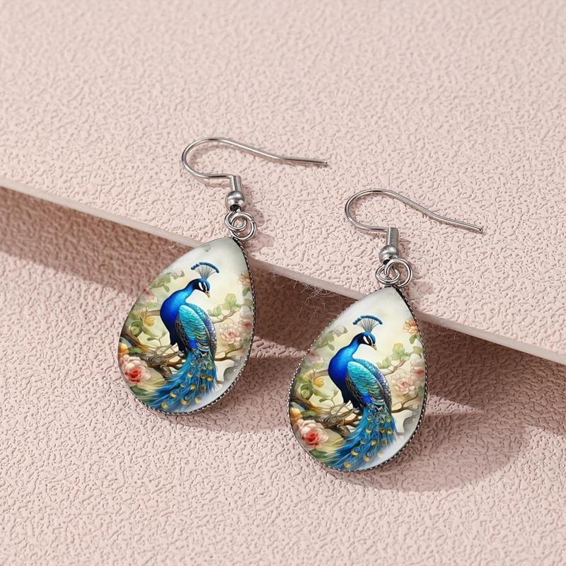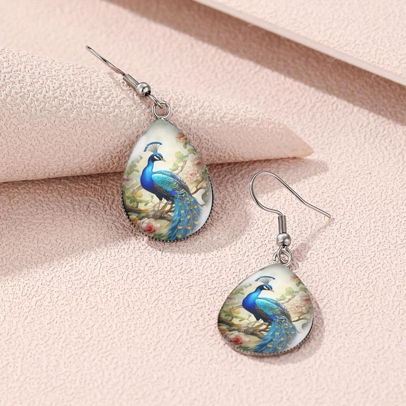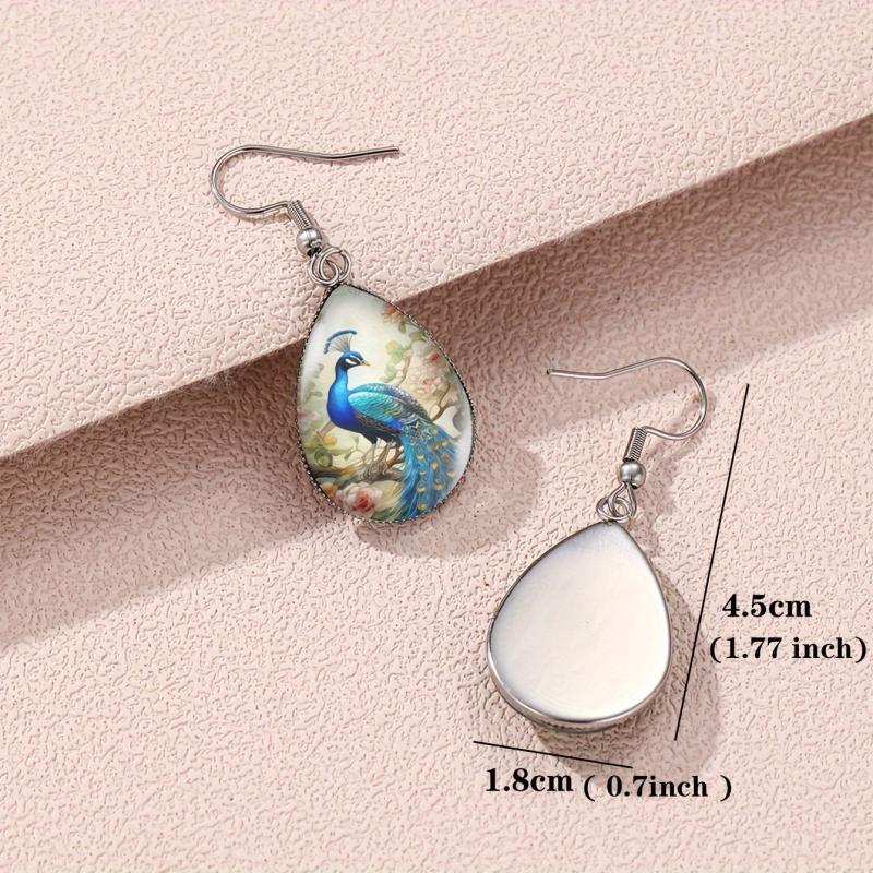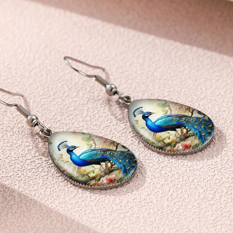 These retro earrings feature a peacock and peony flower design with a bohemian flair, adding a touch of elegance to any outfit.