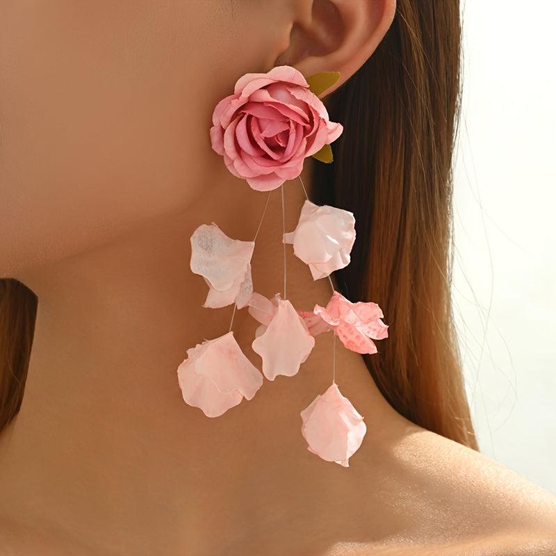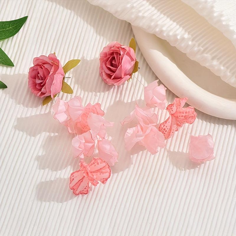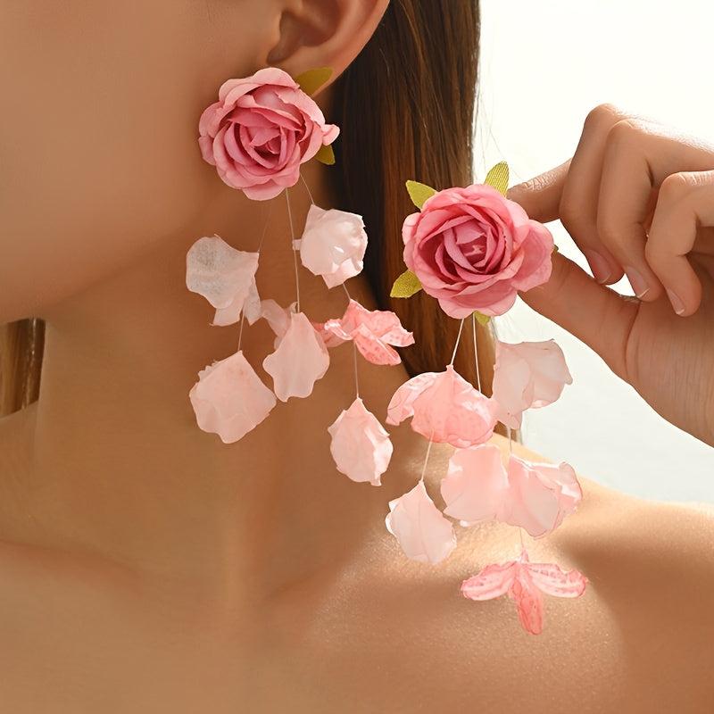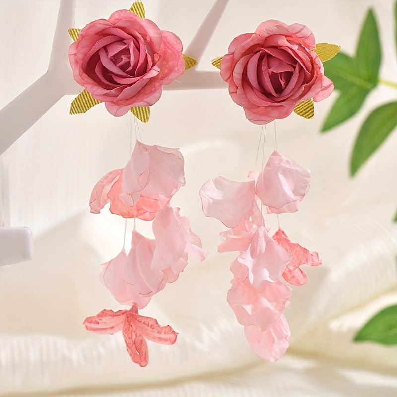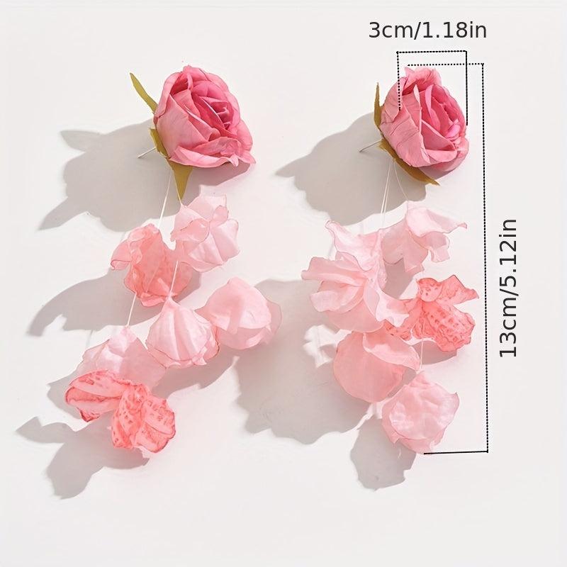 Add a touch of whimsy to your outfit with these long fabric flower earrings. Perfect for daily wear or special occasions, these novelty earrings will make a statement wherever you go.