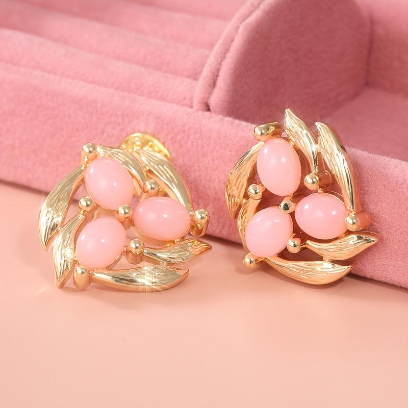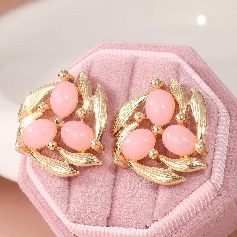 Charming retro pink flower earrings with golden tone accents and sparkling beads. Great for daily wear or special occasions. Ideal gift for women.