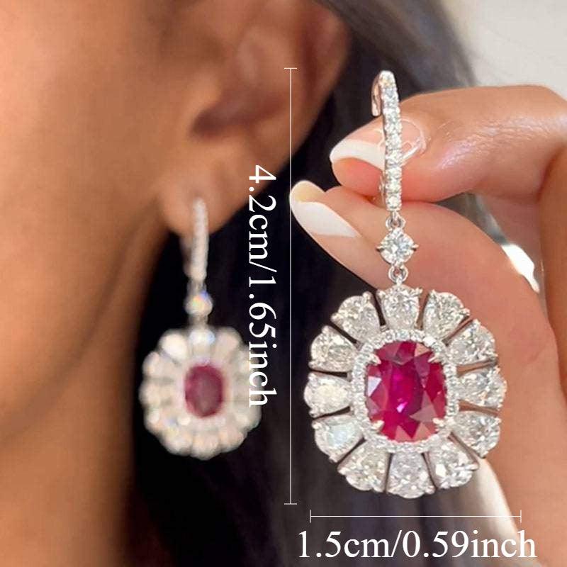 Add a pop of color to your outfit with these vibrant pink gem earrings featuring sparkling rhinestones. Perfect for weddings and formal events.