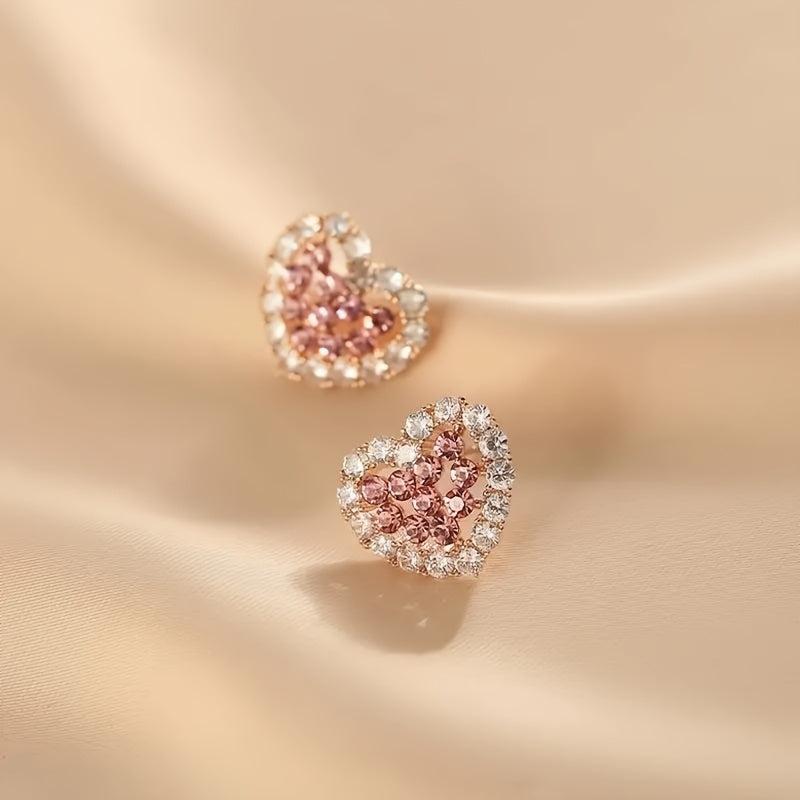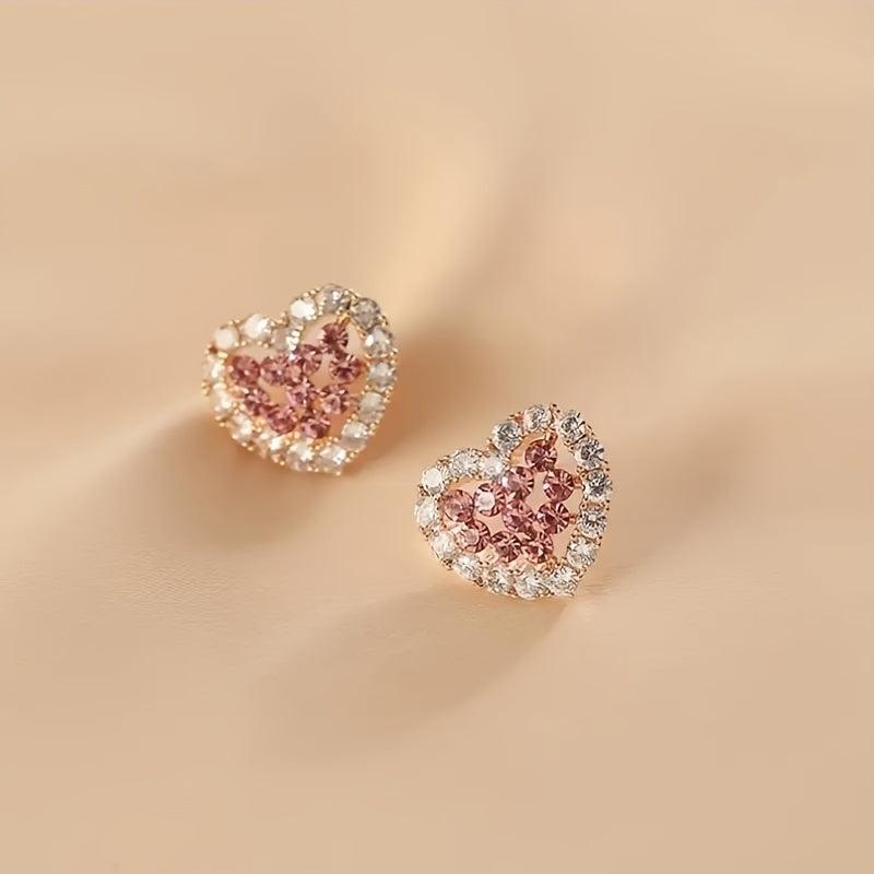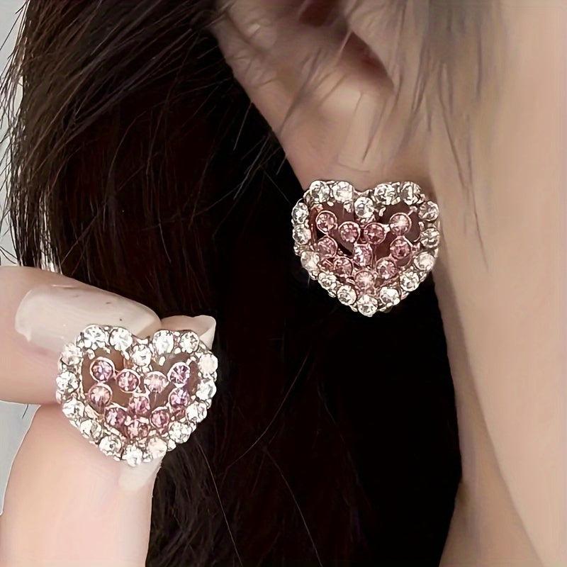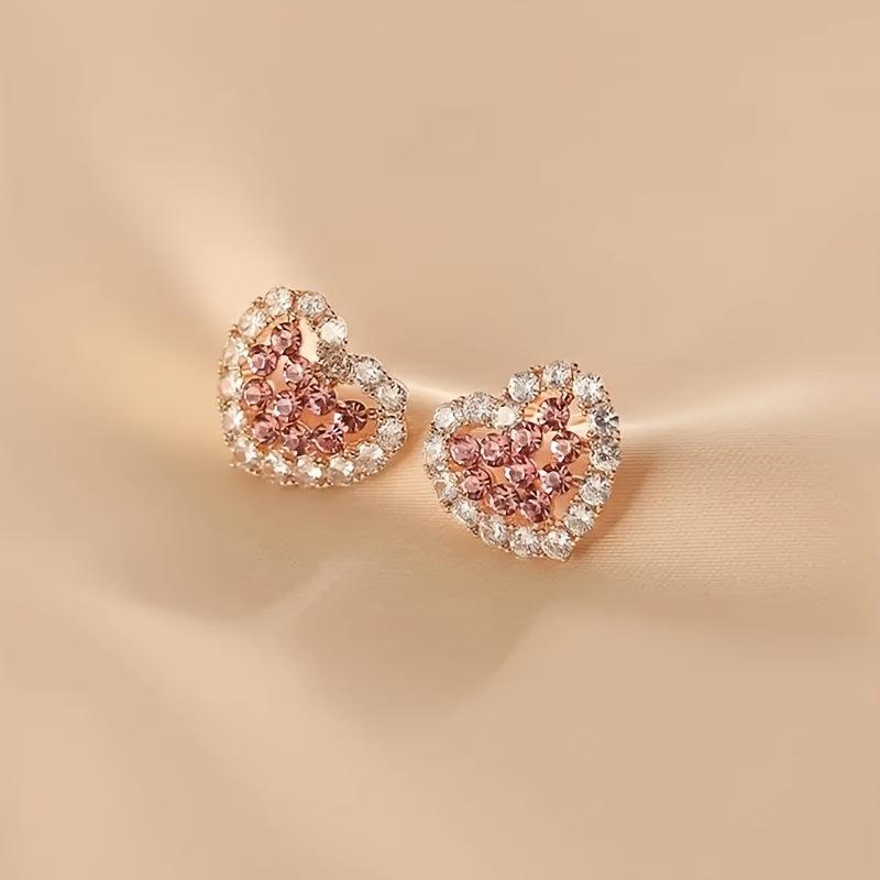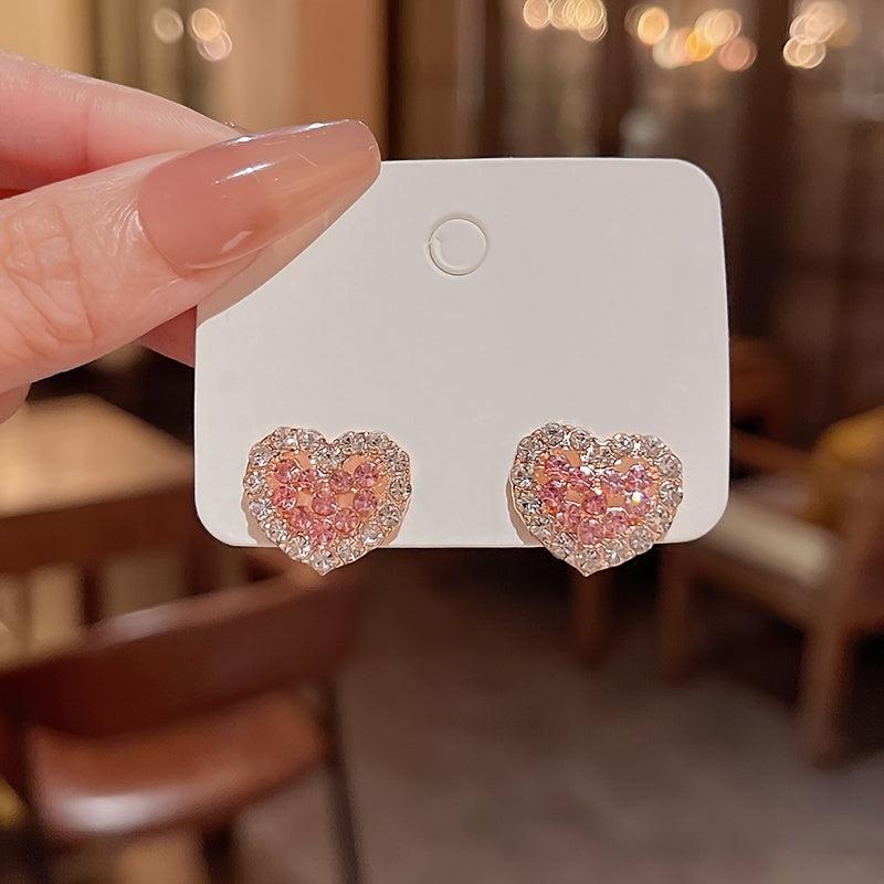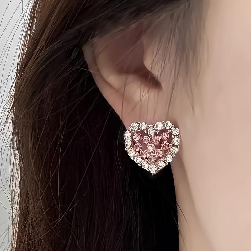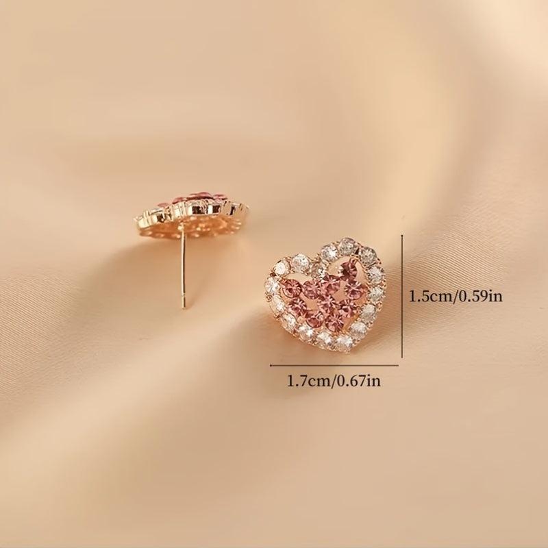 Add a touch of glamour with these stunning Pink Rhinestone Heart Stud Earrings. Made with zinc alloy and 925 sterling silver ear needle, these earrings are perfect for women's date, wedding, or as a gift for any occasion. Suitable for all seasons.