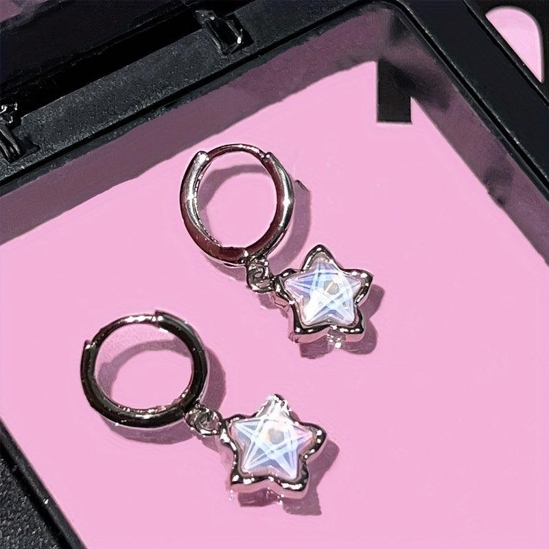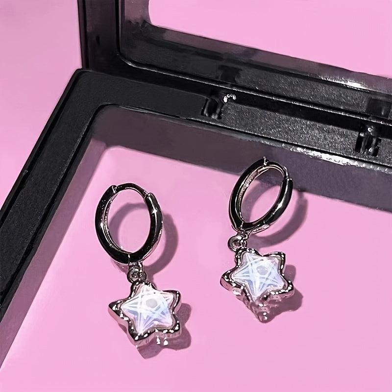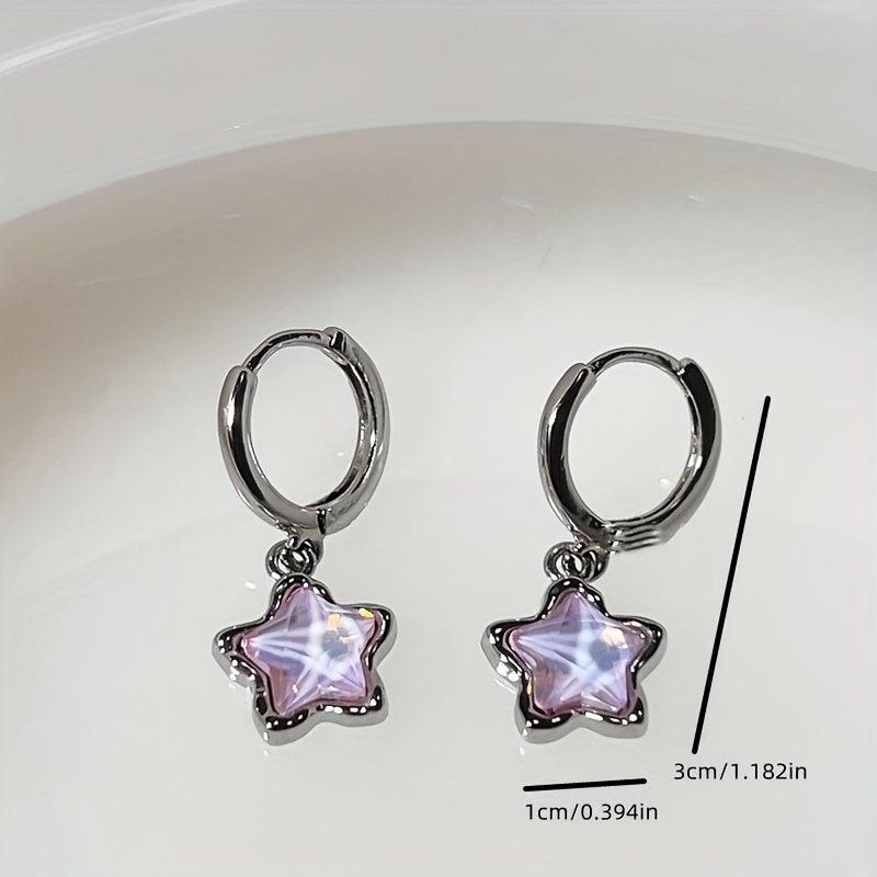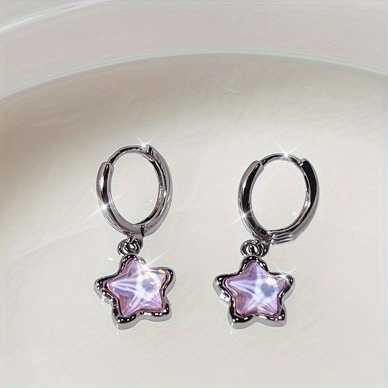 Add a touch of glamour with these pretty pink star pendant hoop earrings. Crafted from alloy with synthetic gems, they are perfect for a casual or formal look. Ideal for gifting during Eid or Ramadan.