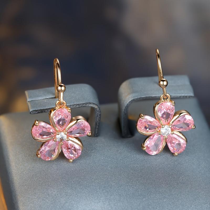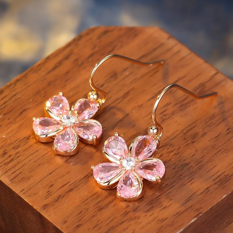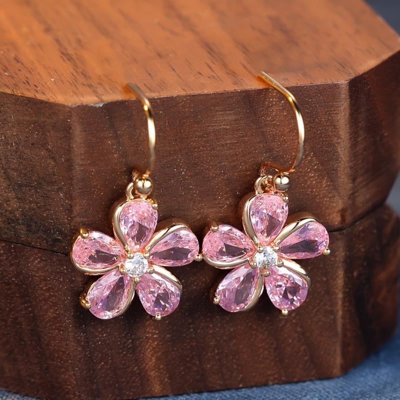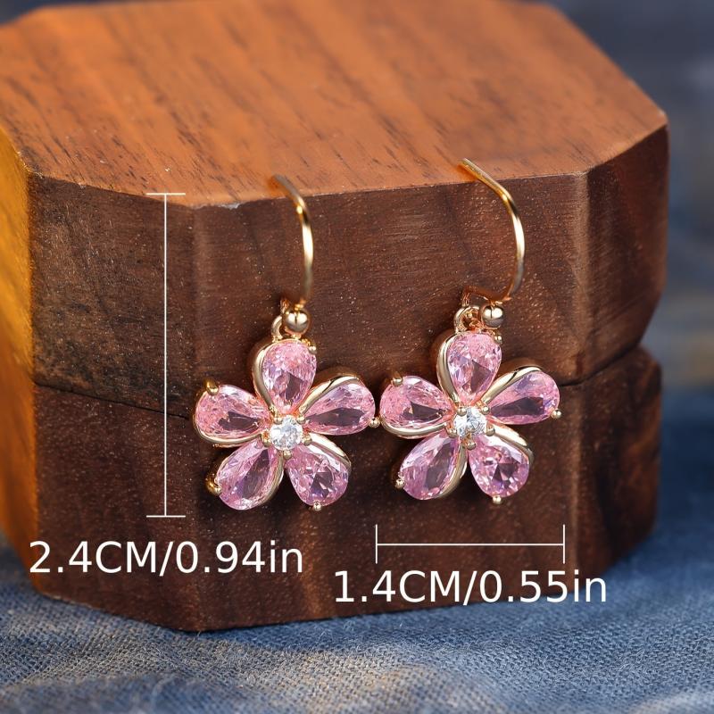 Add a touch of elegance to your outfit with these pink zirconia petal dangle earrings. Perfect for daily wear or special occasions all year round.