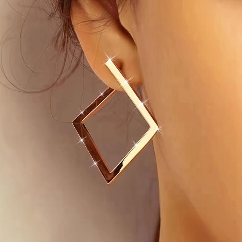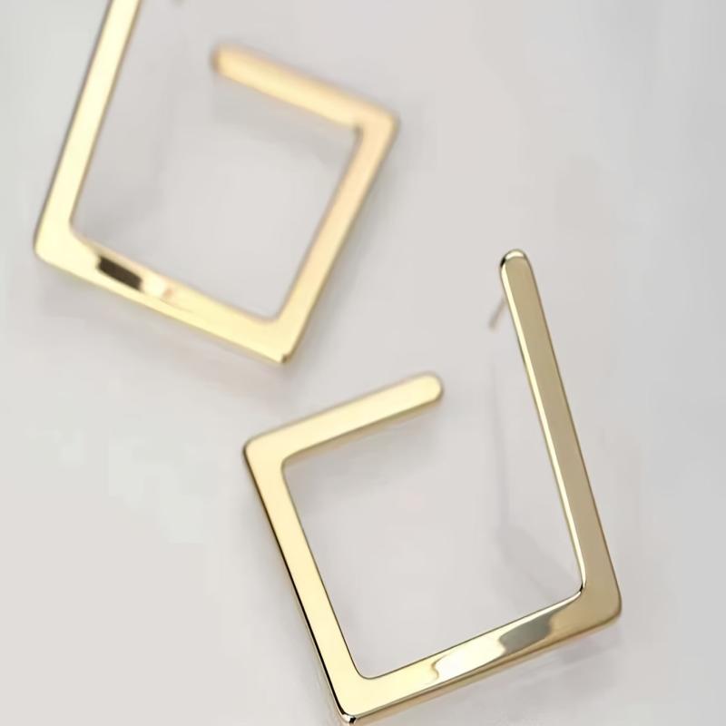 These punk style geometric square iron earrings with golden plating are perfect for parties, banquets, Ramadan, and everyday wear.