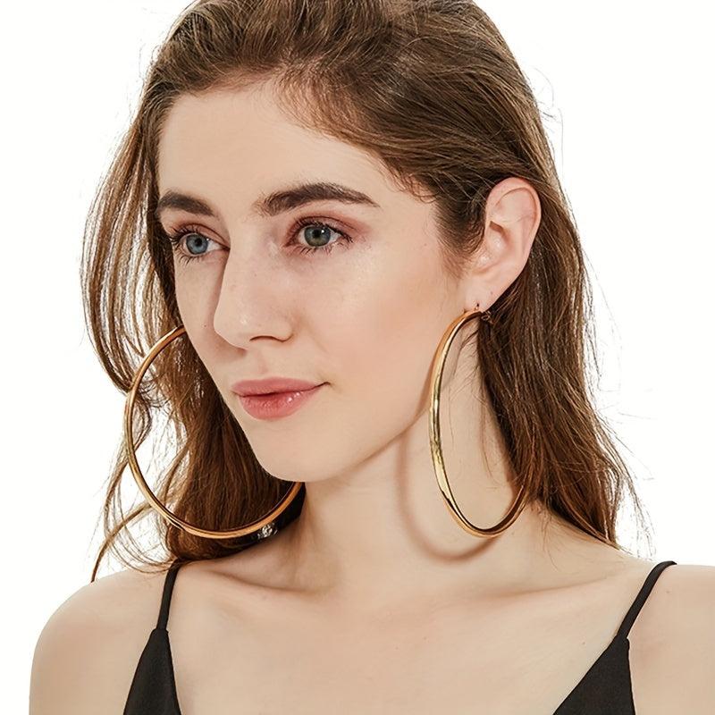 Add a touch of punk flair to your look with these large hoop earrings. Perfect for parties or casual wear, these earrings are a statement piece that will elevate any outfit.