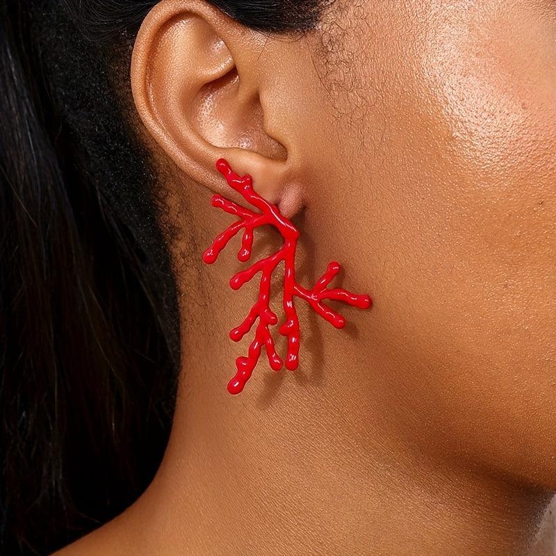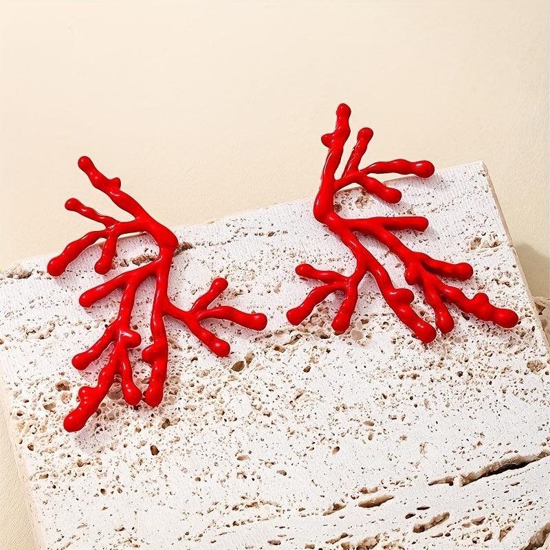 Add a pop of color to your look with these vintage-inspired red coral branch stud earrings. Made with stainless steel posts and alloy, they are perfect for casual attire and gifting.