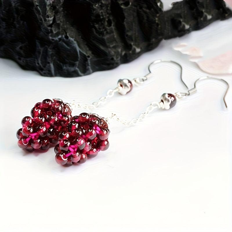 Add a pop of color to your outfit with these stunning red garnet drop earrings. The hypoallergenic 925 sterling silver hooks make them perfect for parties and holidays. Their lightweight design adds a touch of boho chic to your look.