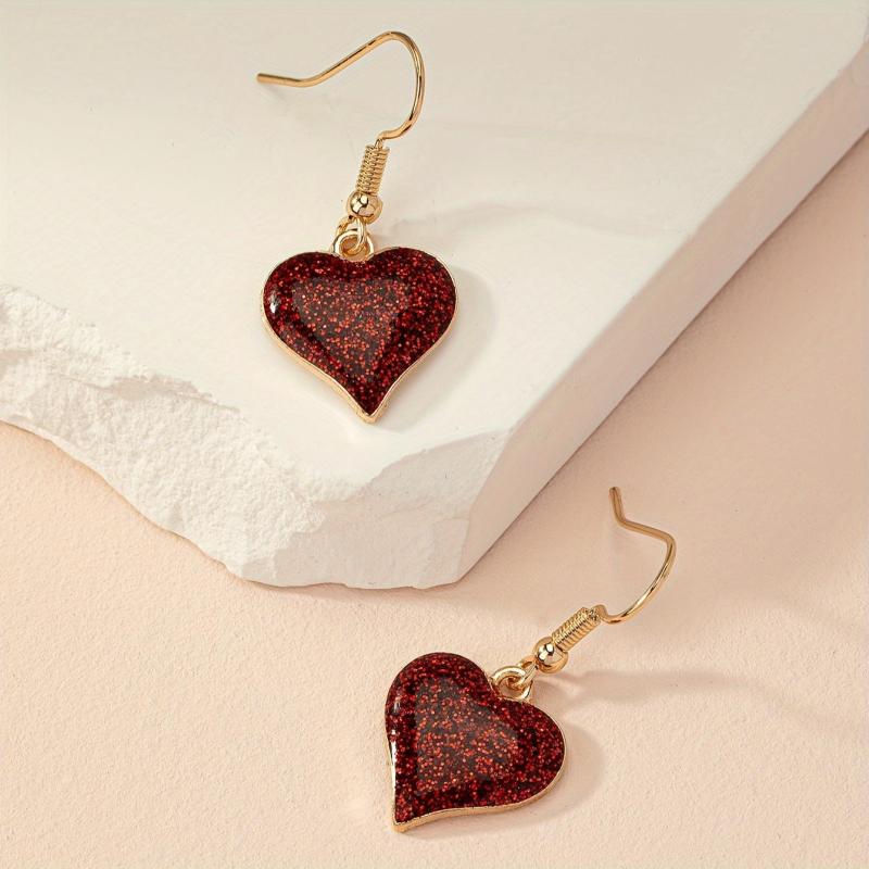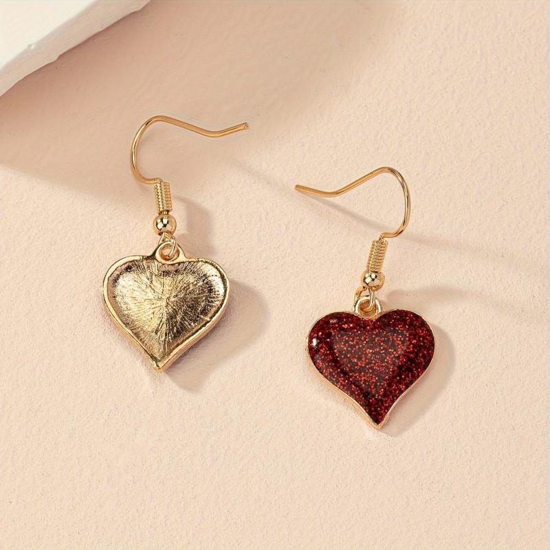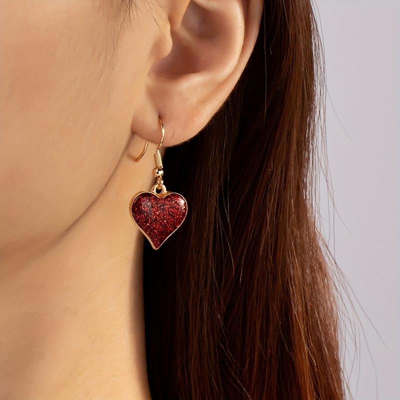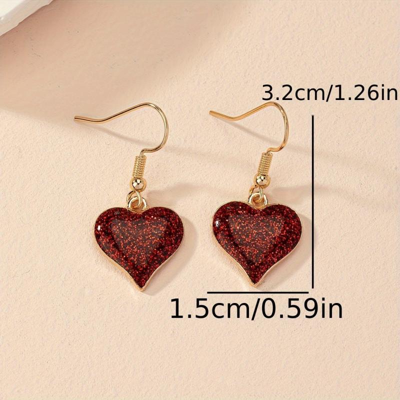 These stunning red glitter heart earrings feature a golden tone zinc alloy and sparkling drop design. They are versatile for daily wear or parties, making them the perfect gift for women.