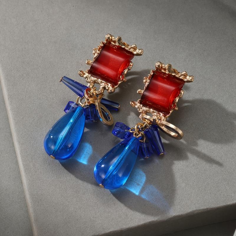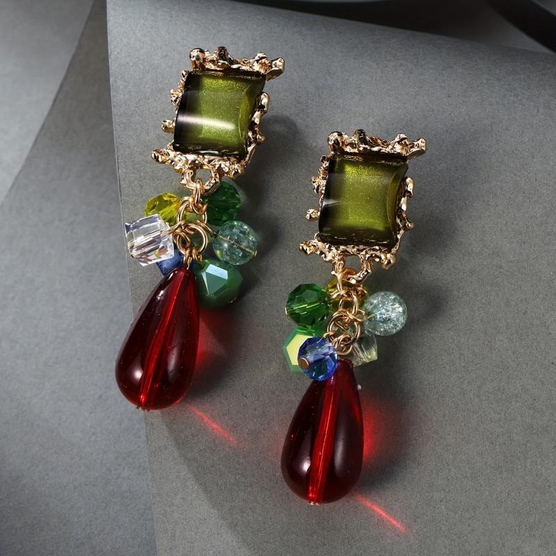 Add a touch of elegance to your outfit with these stunning clip-on earrings featuring red and green synthetic gems. Perfect for all seasons and special occasions, including Ramadan parties. Made with high-quality copper ear needles for comfort and style.