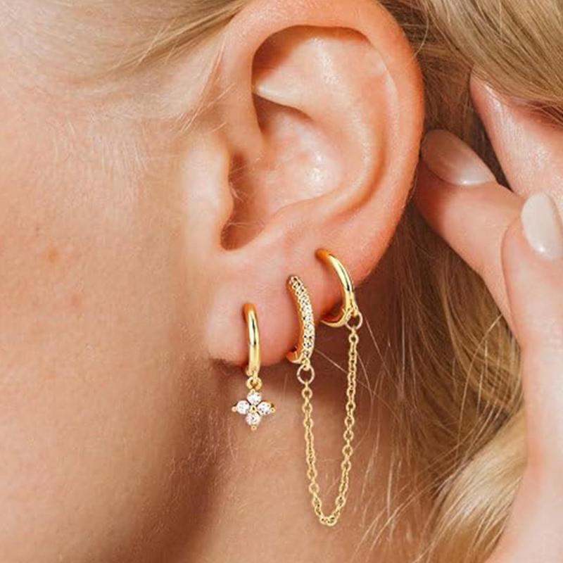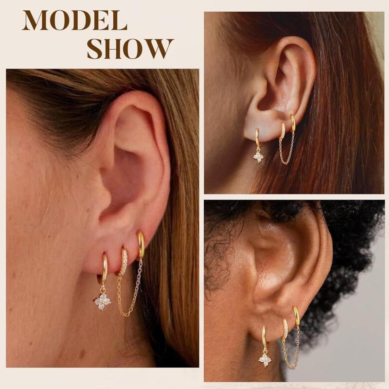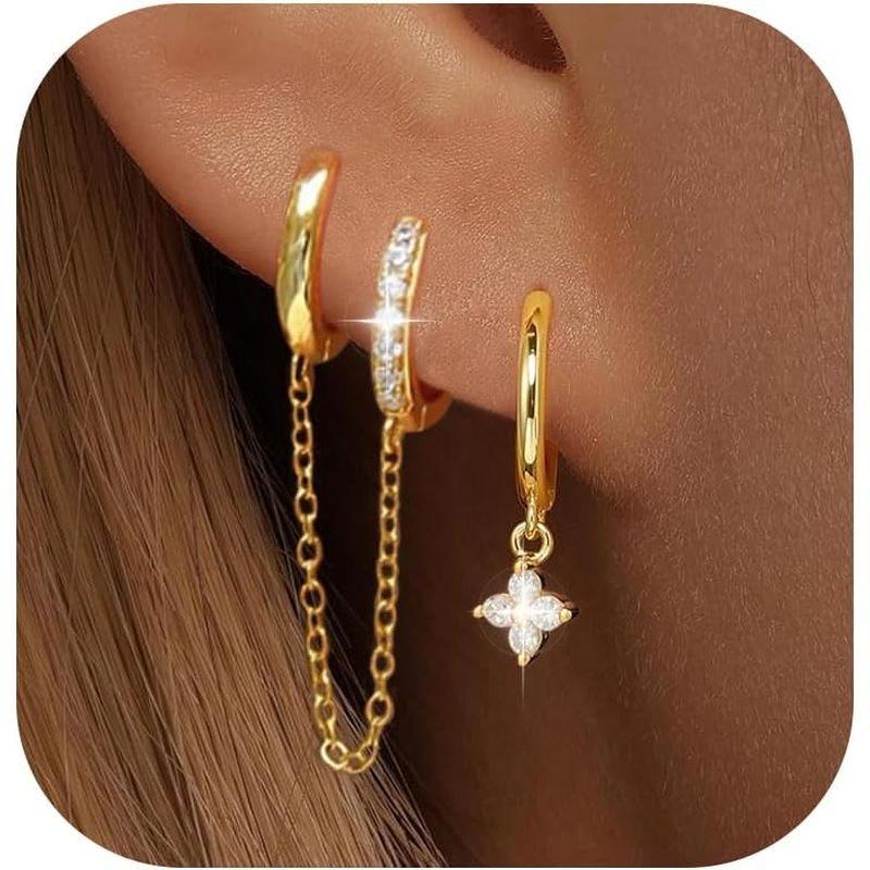 These hoop earrings are crafted in 14K golden-plated copper and adorned with synthetic zircon, adding a touch of vintage charm to your look.