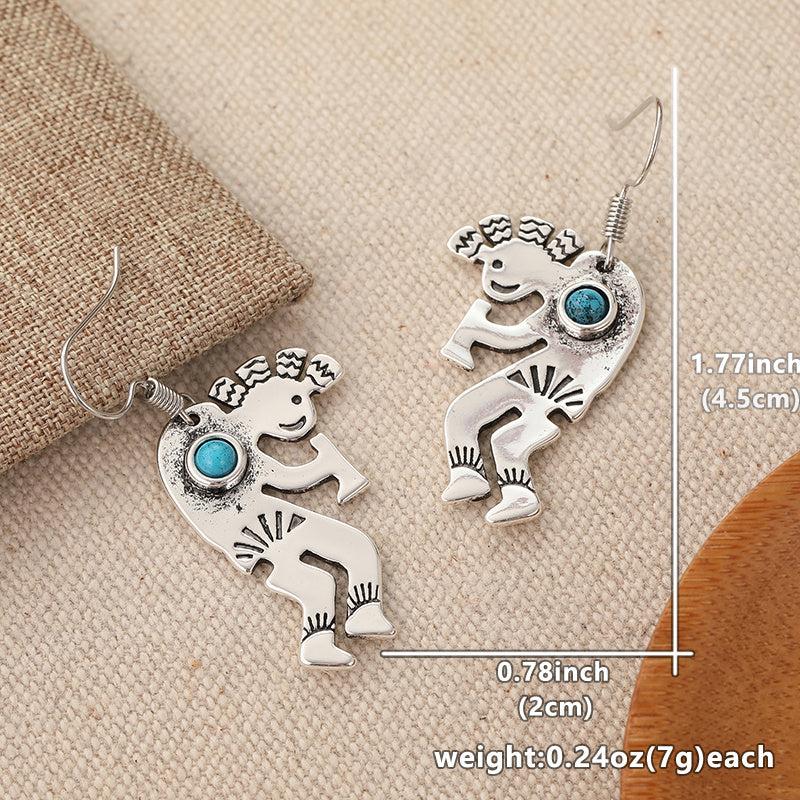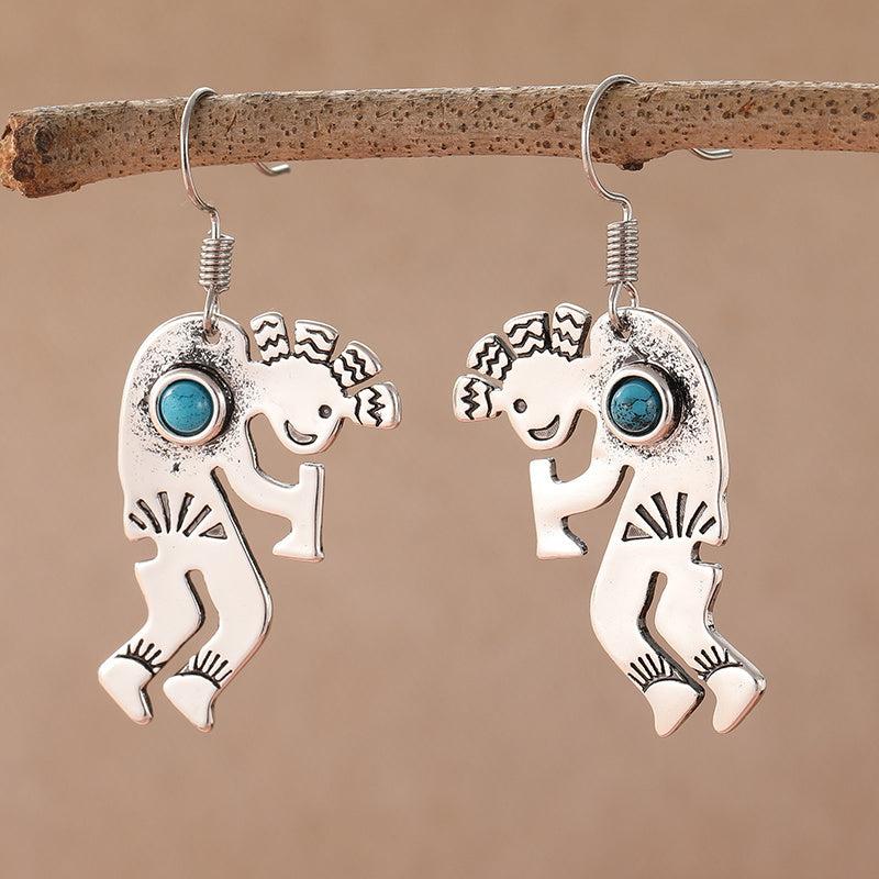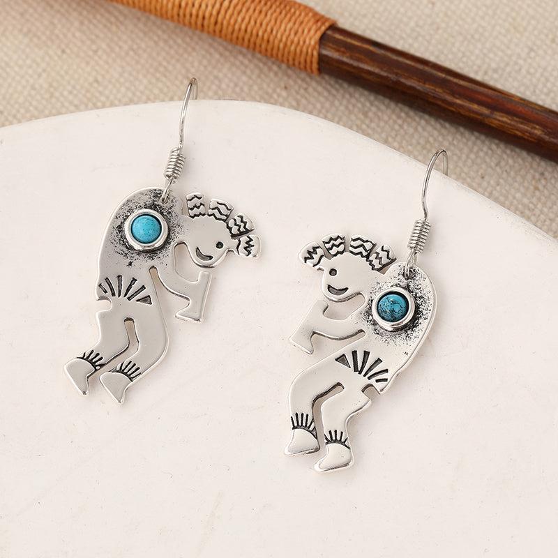 Golden plated whimsical dancing figures with sunray patterns in lightweight, durable jewelry.
