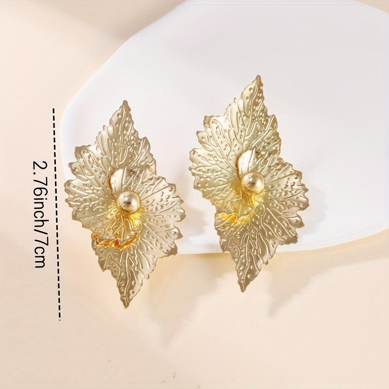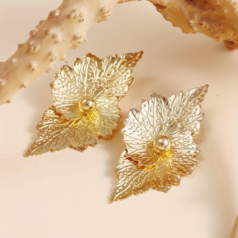 Retro Exaggerated Metal Ginkgo Leaf Earrings Female Accessories