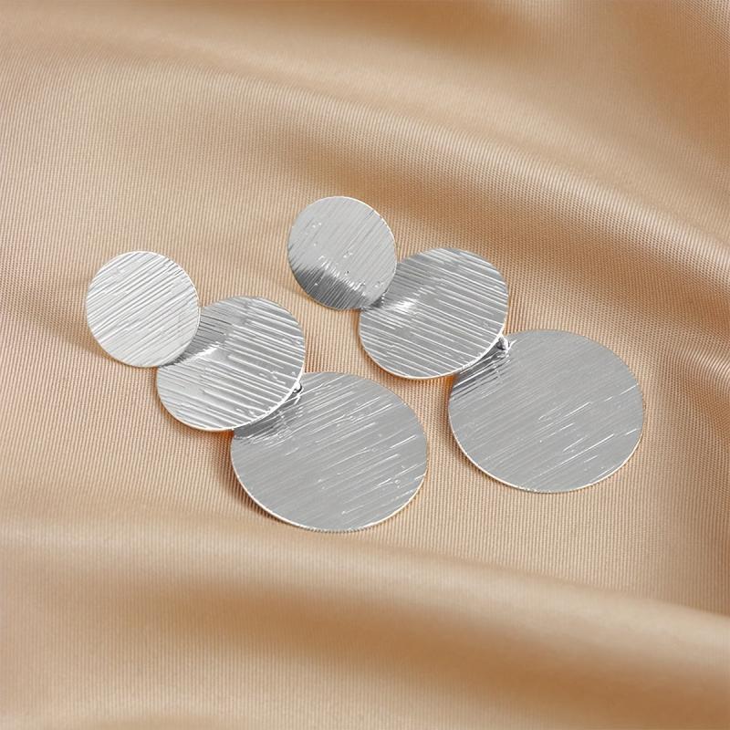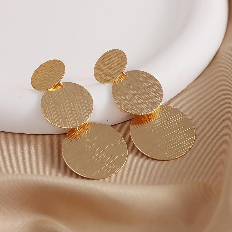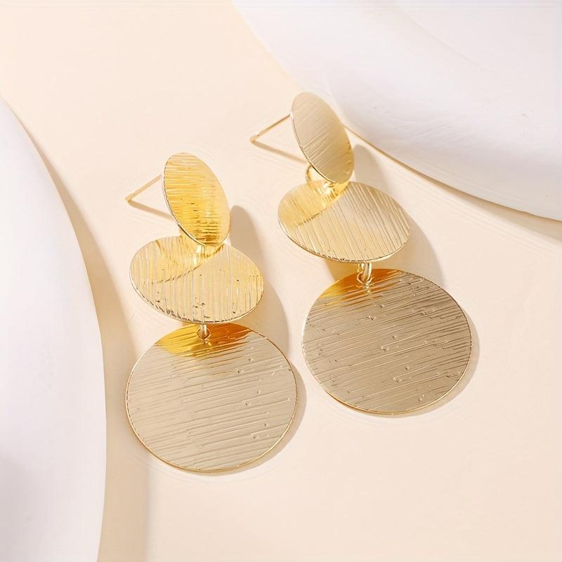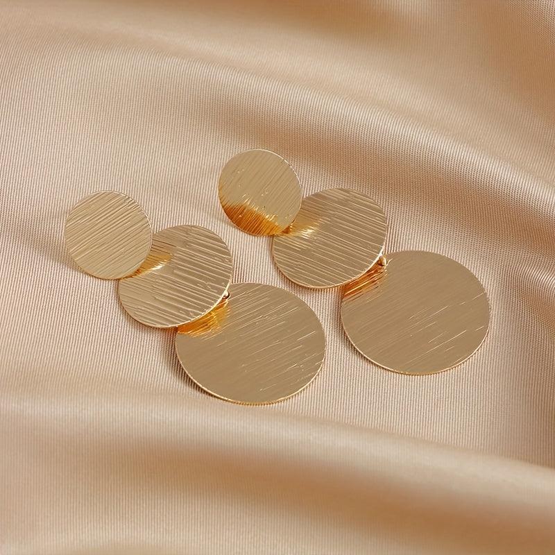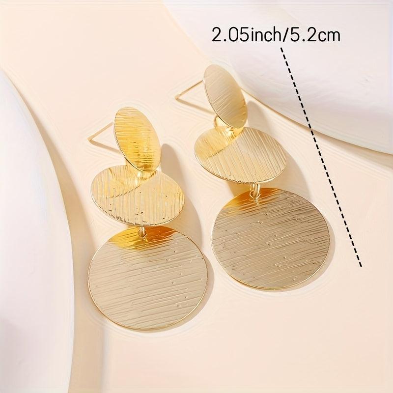 Add a touch of European and American retro flair to your outfit with these metal textured circle earrings. The design is both bold and elegant, making it perfect for adding a pop of style to any look.