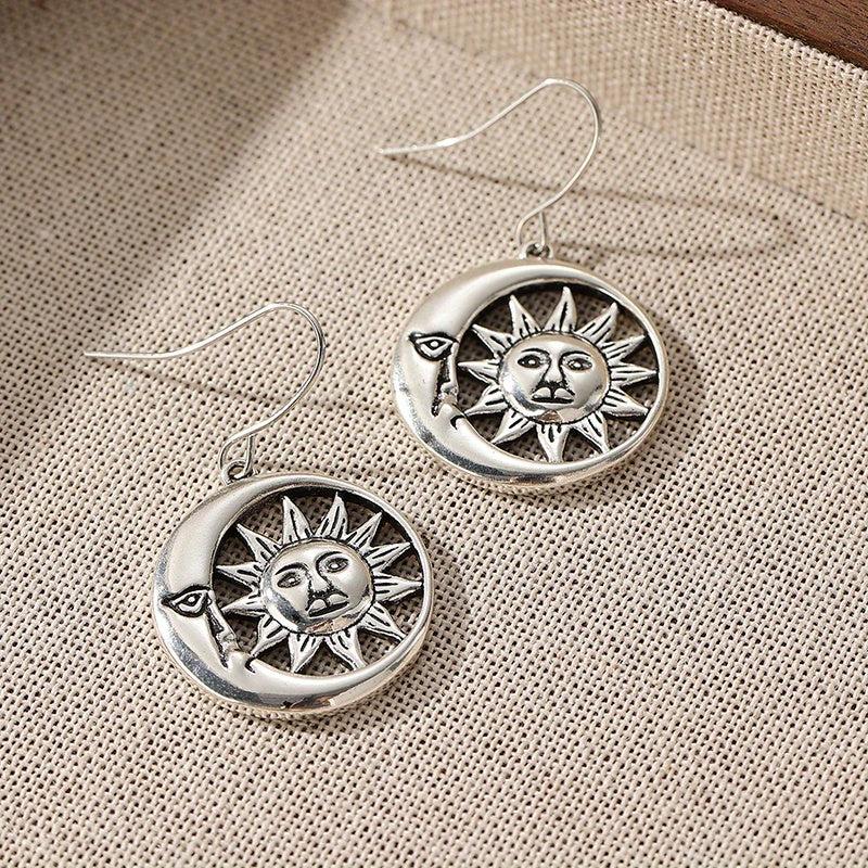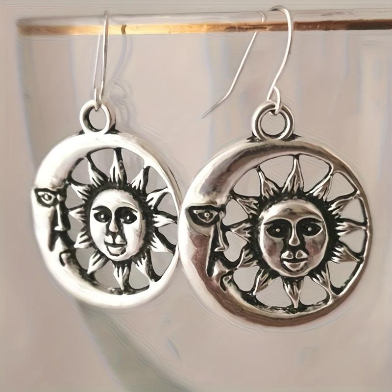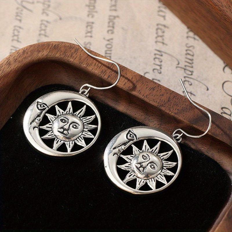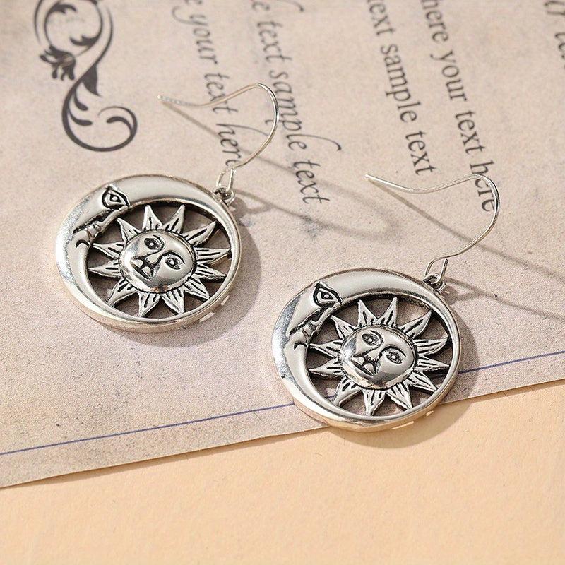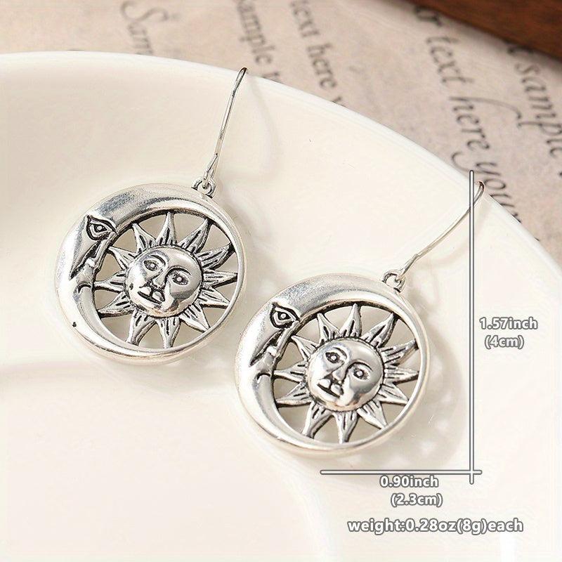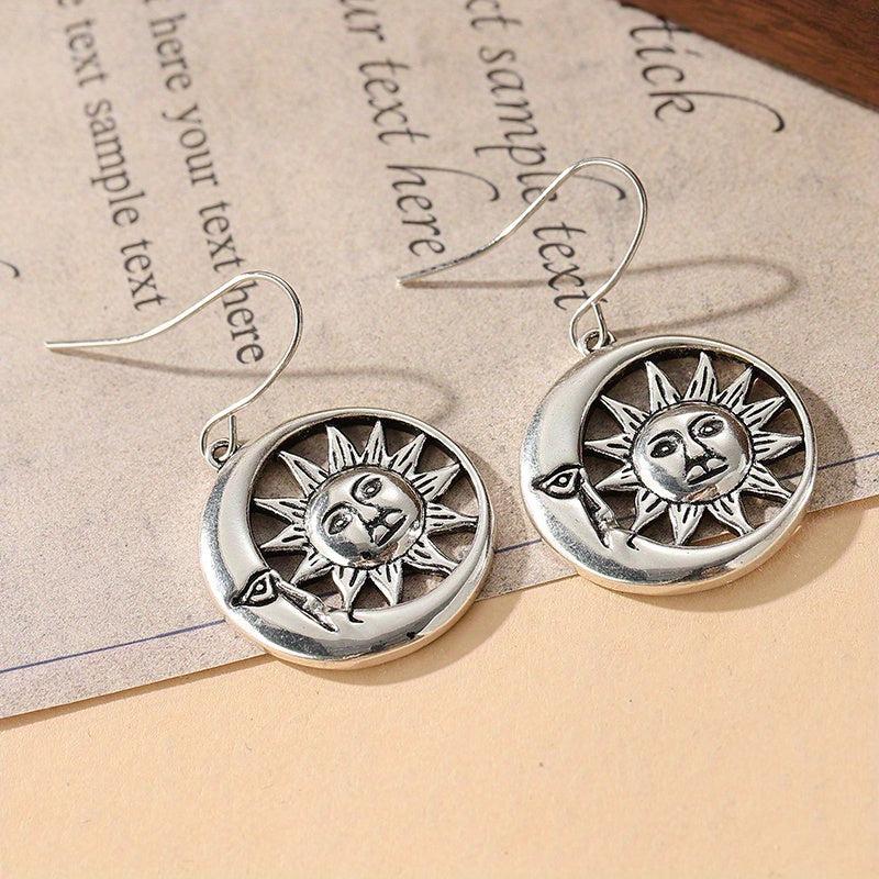 Add a touch of retro charm to your holiday parties with these creative sun, moon, and circular pendant earrings.