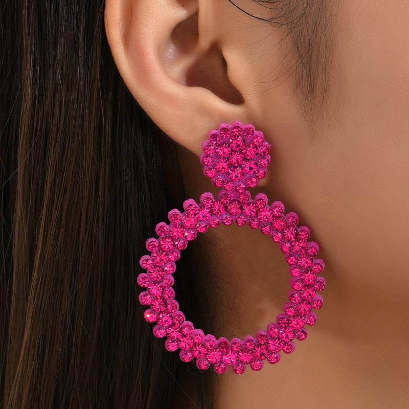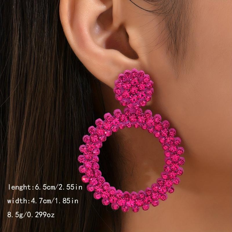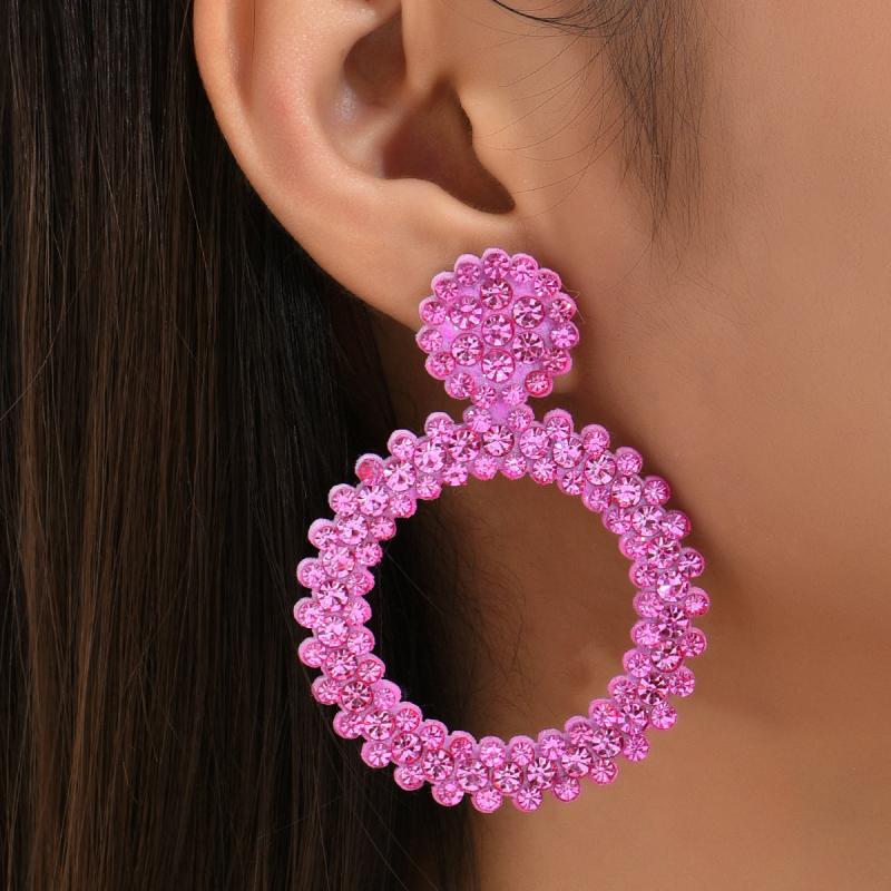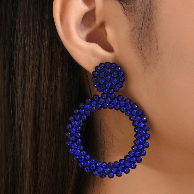 These full rhinestone circle stud earrings are a perfect accessory for casual attire. They feature stainless steel posts for durability and style.