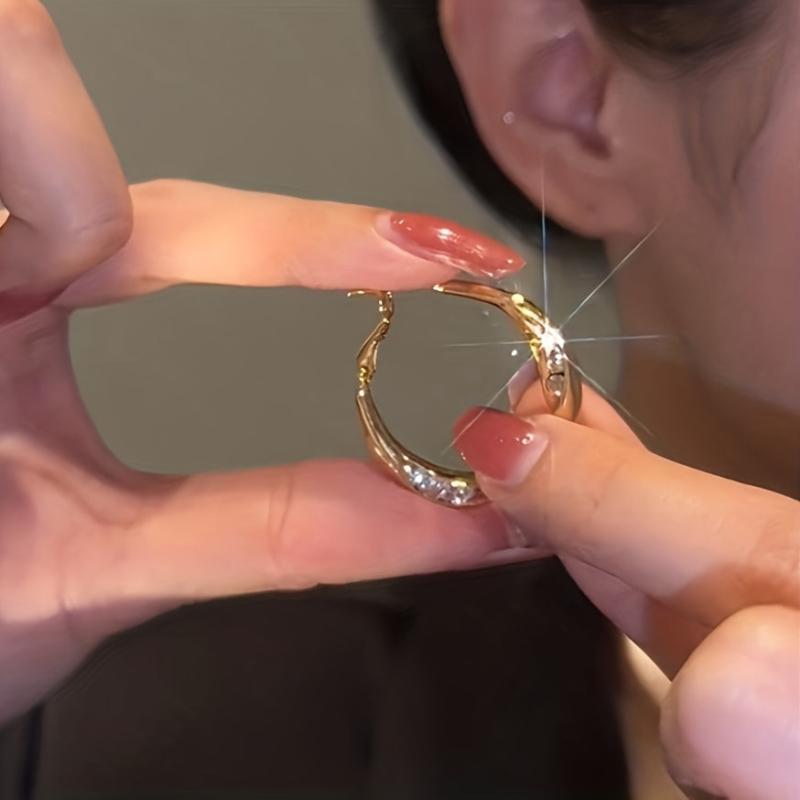 Rhinestone Hoop Earrings Minimalist Alloy w/ Stainless Steel Posts