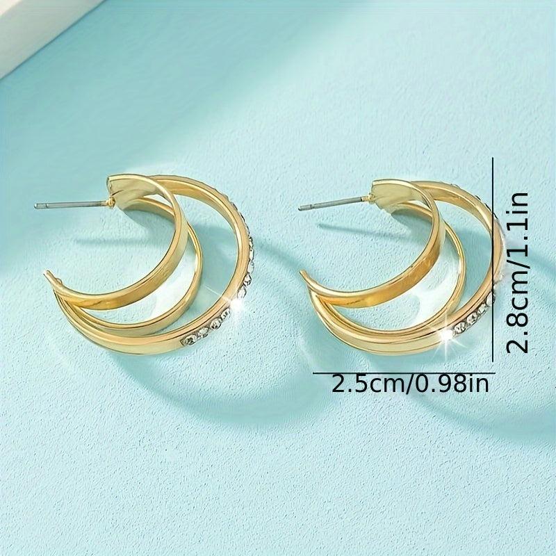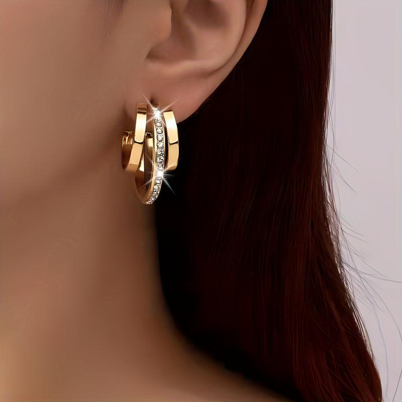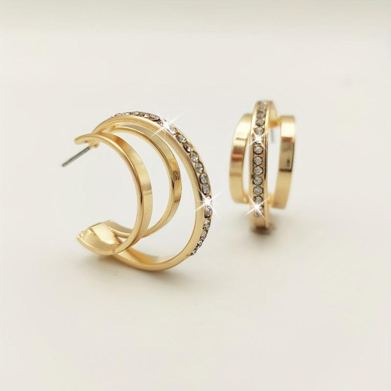 Elevate your look with these stunning triple layered hoop earrings featuring rhinestone decoration. Perfect for adding a touch of glam to your vacation style.