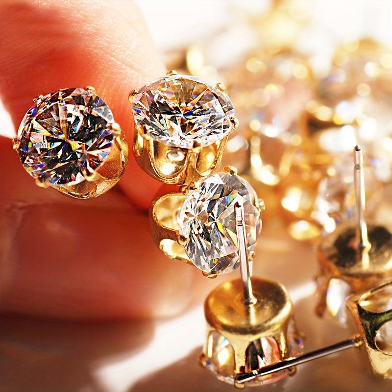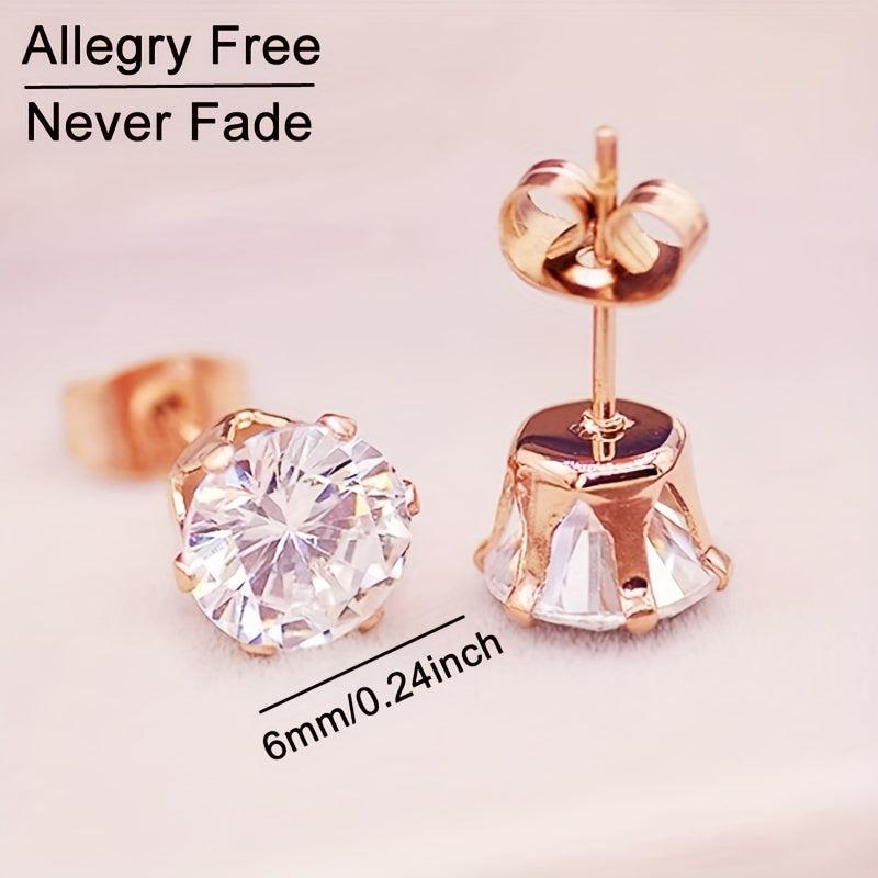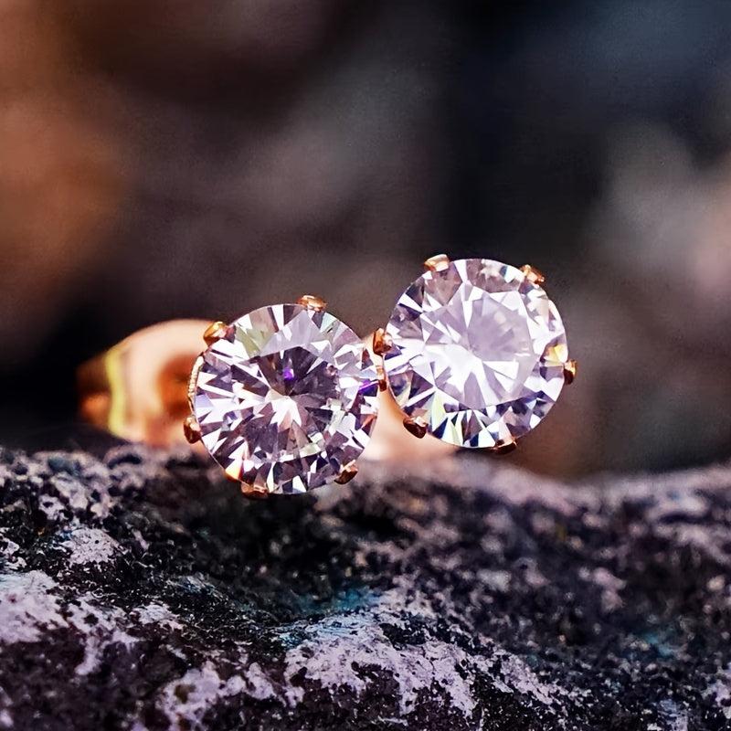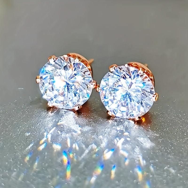 Enhance your style with these stunning rose gold plated stud earrings featuring round dazzling synthetic zirconia stones. Perfect for weddings, parties, and casual outfits.
