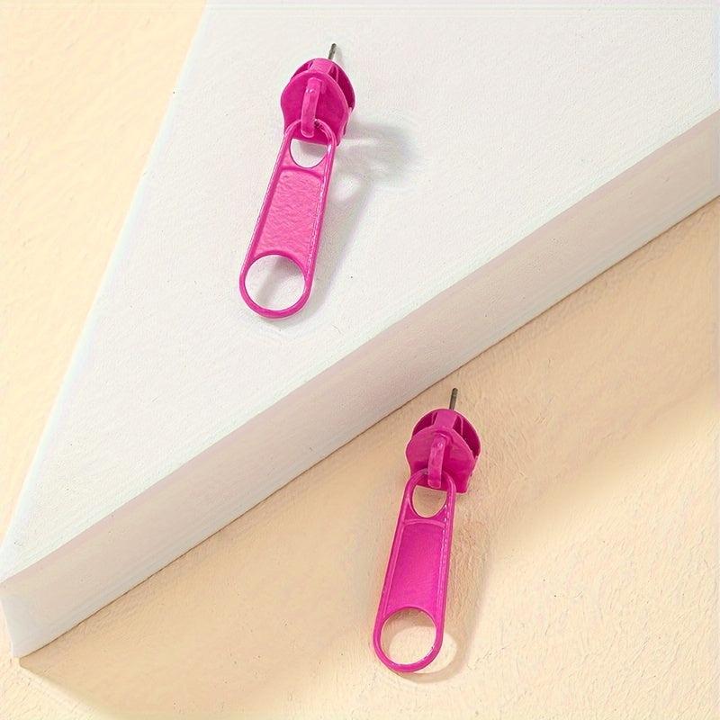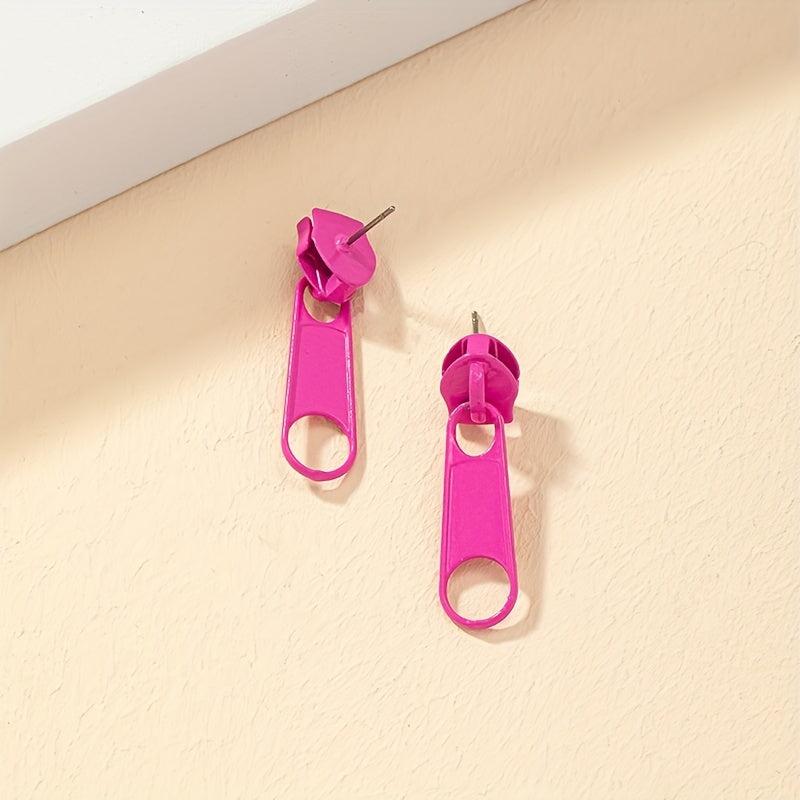 These elegant rose red earrings with zipper drop design are perfect for everyday wear or vacation outfits. Crafted with alloy and 925 silvery posts for a chic look.
