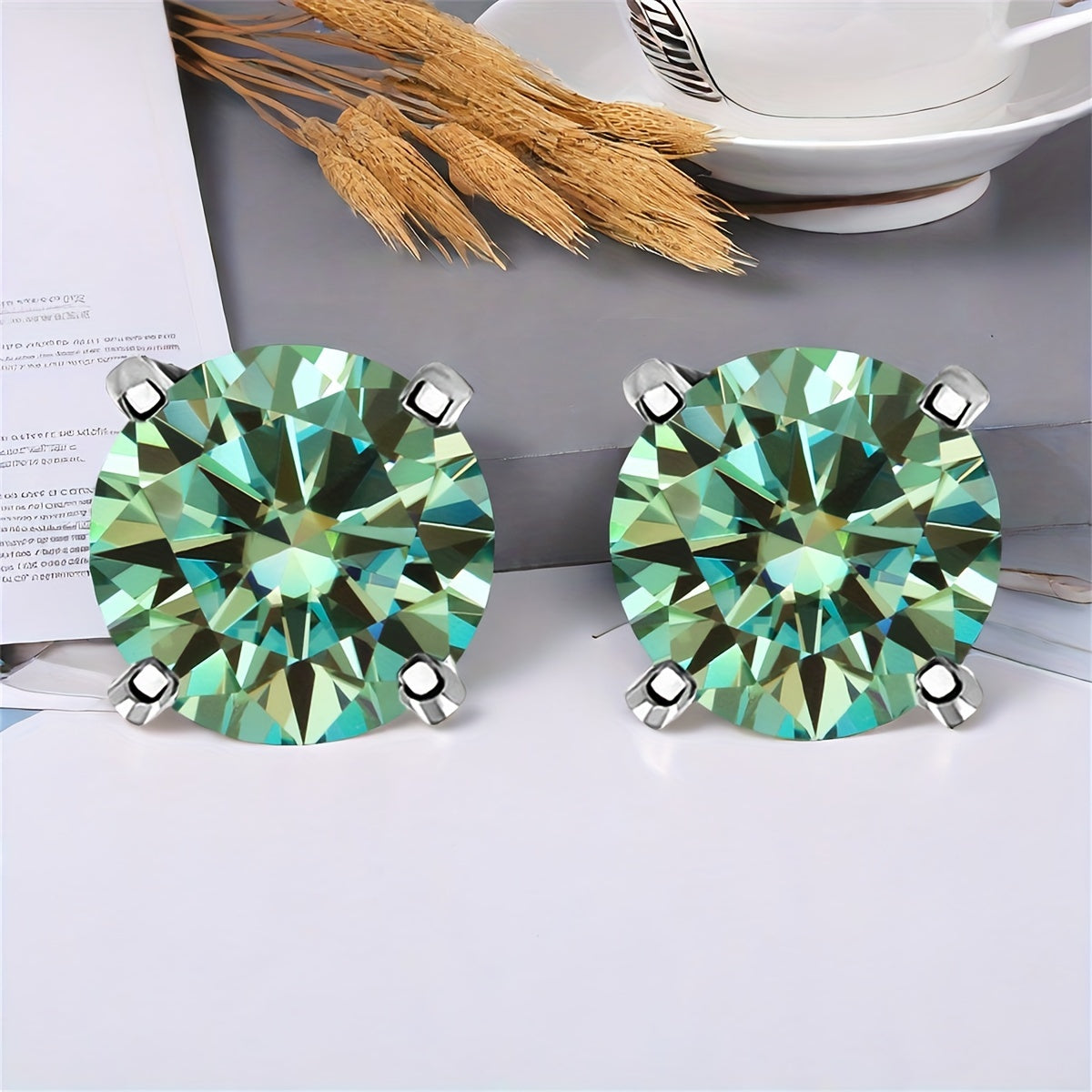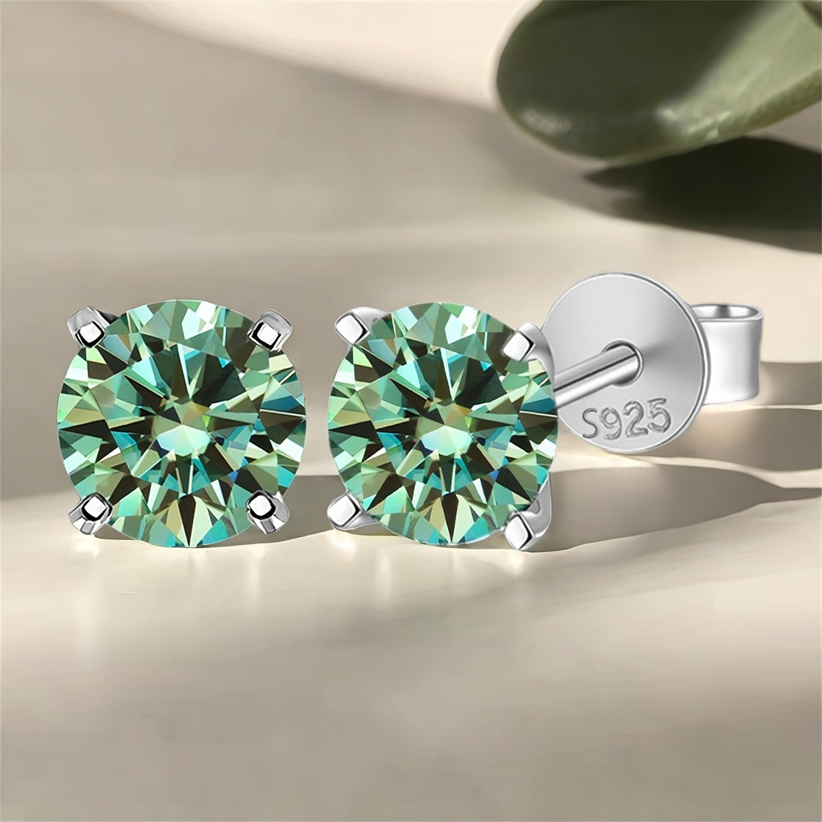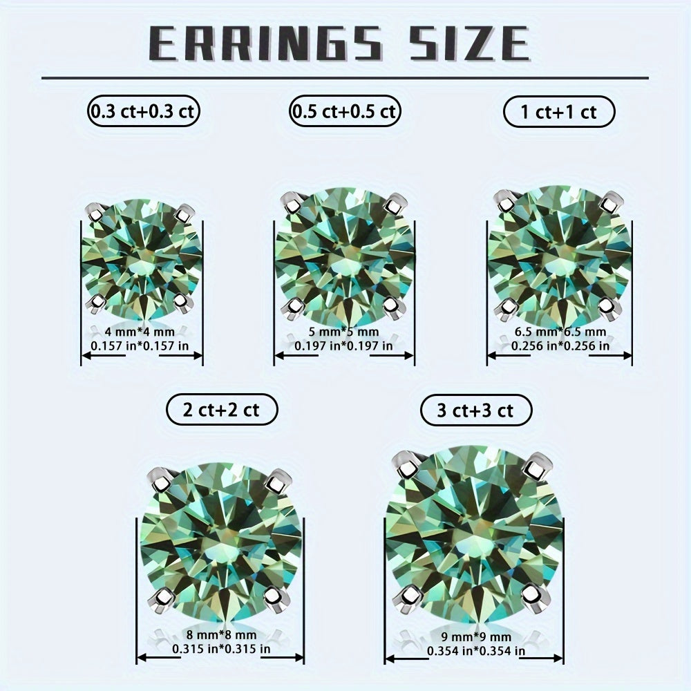 These stylish earrings are made with synthetic moissanite stones and set in S925 silver. They feature a beautiful green, yellow, and silvery color combination.